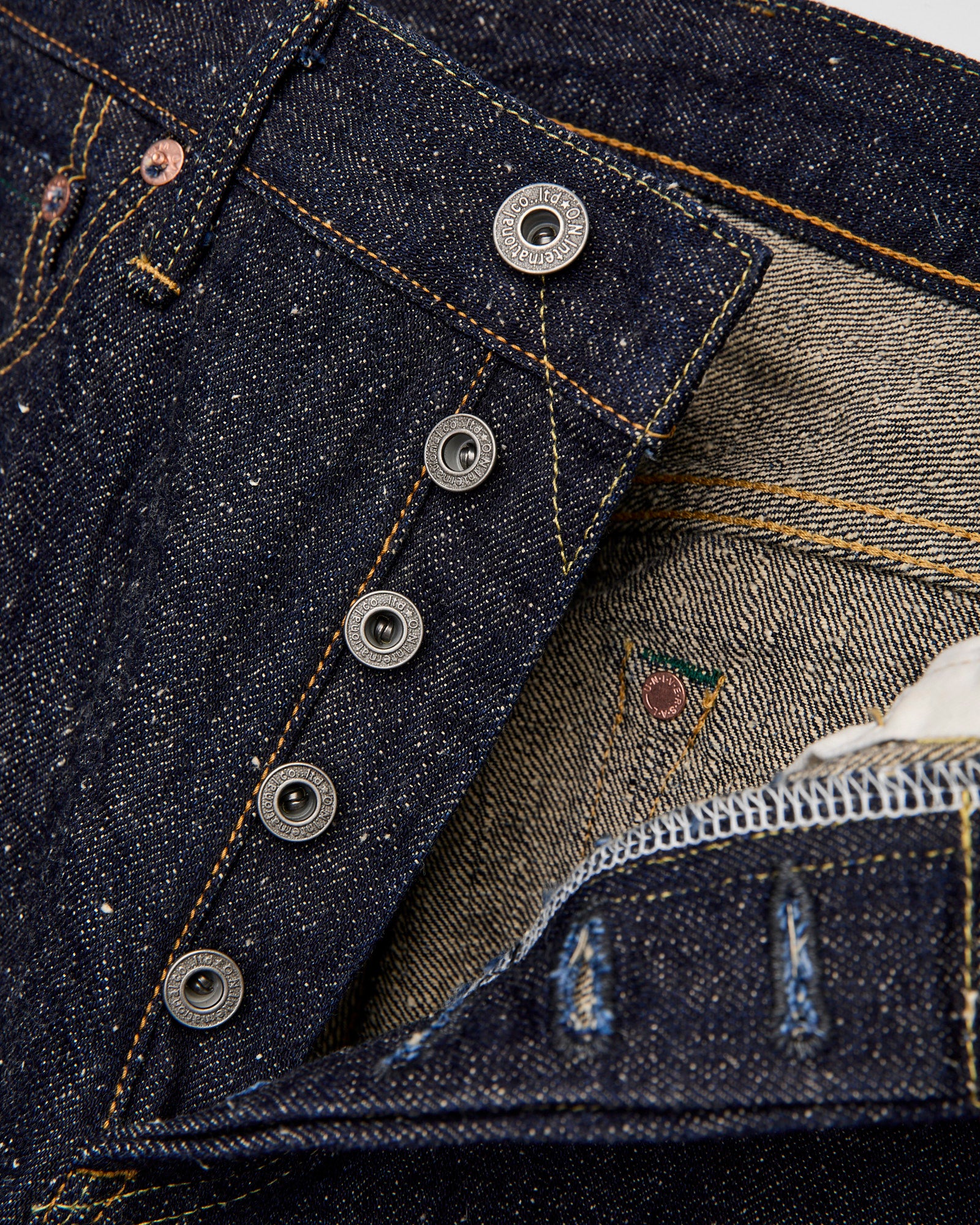 • The 13.7oz Nep denim from ONI is the brand’s newest mid-weight denim offering, woven at a low tension while maintaining ONI’s signature slub texture. The fabric features a natural beige weft with hints of nep poking through the surface, giving the rope-dyed indigo warp a warm earthy tone. The jeans have undergone a tempi treatment to eliminate shrinkage and enhance the denim’s hand feel. ONI's Classic Straight fit, which features a vintage-style high rise and a relaxed, roomy fit throughout the legs.