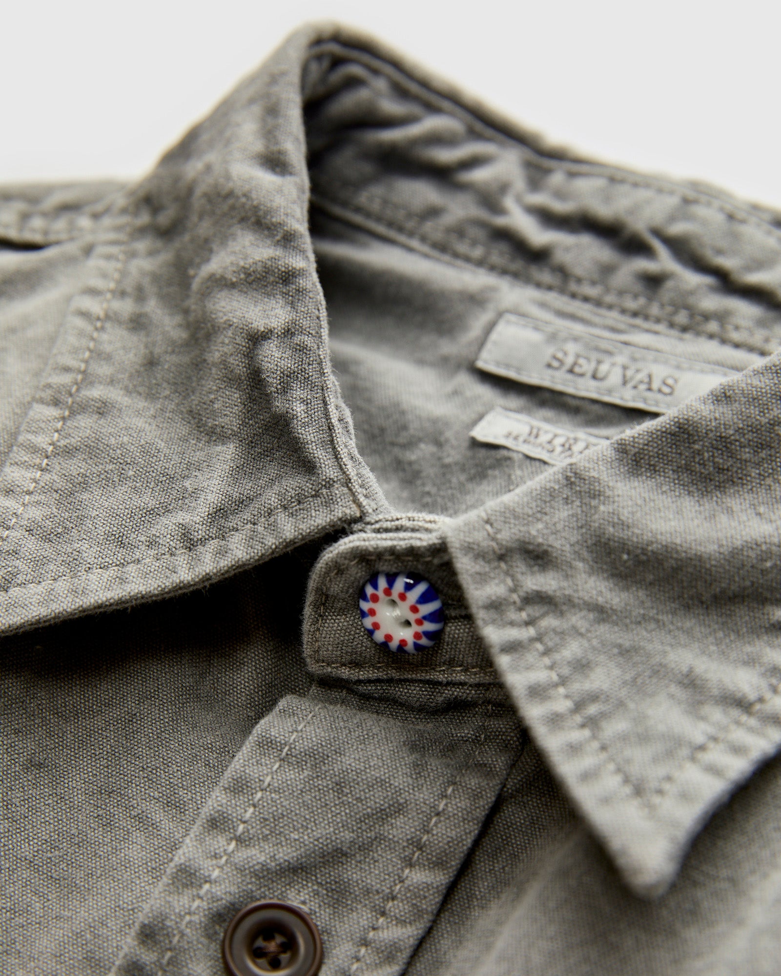 • Crafted from the world’s finest canvas, Seuvas weaves their version of the classic American workshirt. Made from 8oz Kurashiki canvas, Sevuas' proprietary canvas fabric is celebrated for its varied texture and hardwearing durability. The shirt is garment dyed using Sumi ink for a natural-rustic tone. Sewn on vintage machinery, the workshirt features a classic workwear inspired design, complete with chainsitched side-seams, dual utility chest pockets, and pointed button-up collar