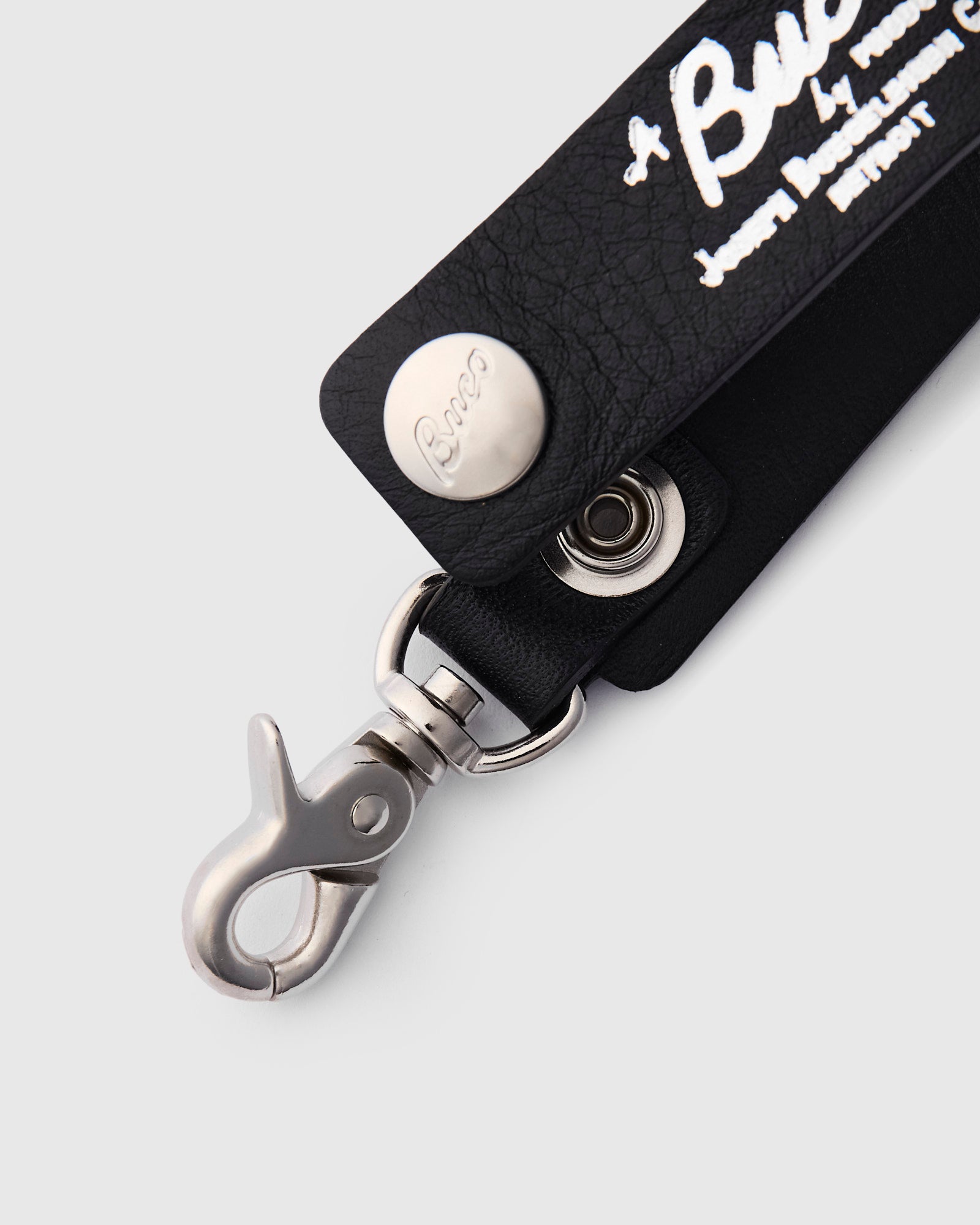 • Built using horsehide leather scraps collected throughout production of Buco leather jackets, this glove strap functions as both a glove holder and keychain. The Buco horsehide is chrome-tanned for a wrinkle-resistant finish that softens with use. Fitted with a custom brass snap and spring-loaded clip.