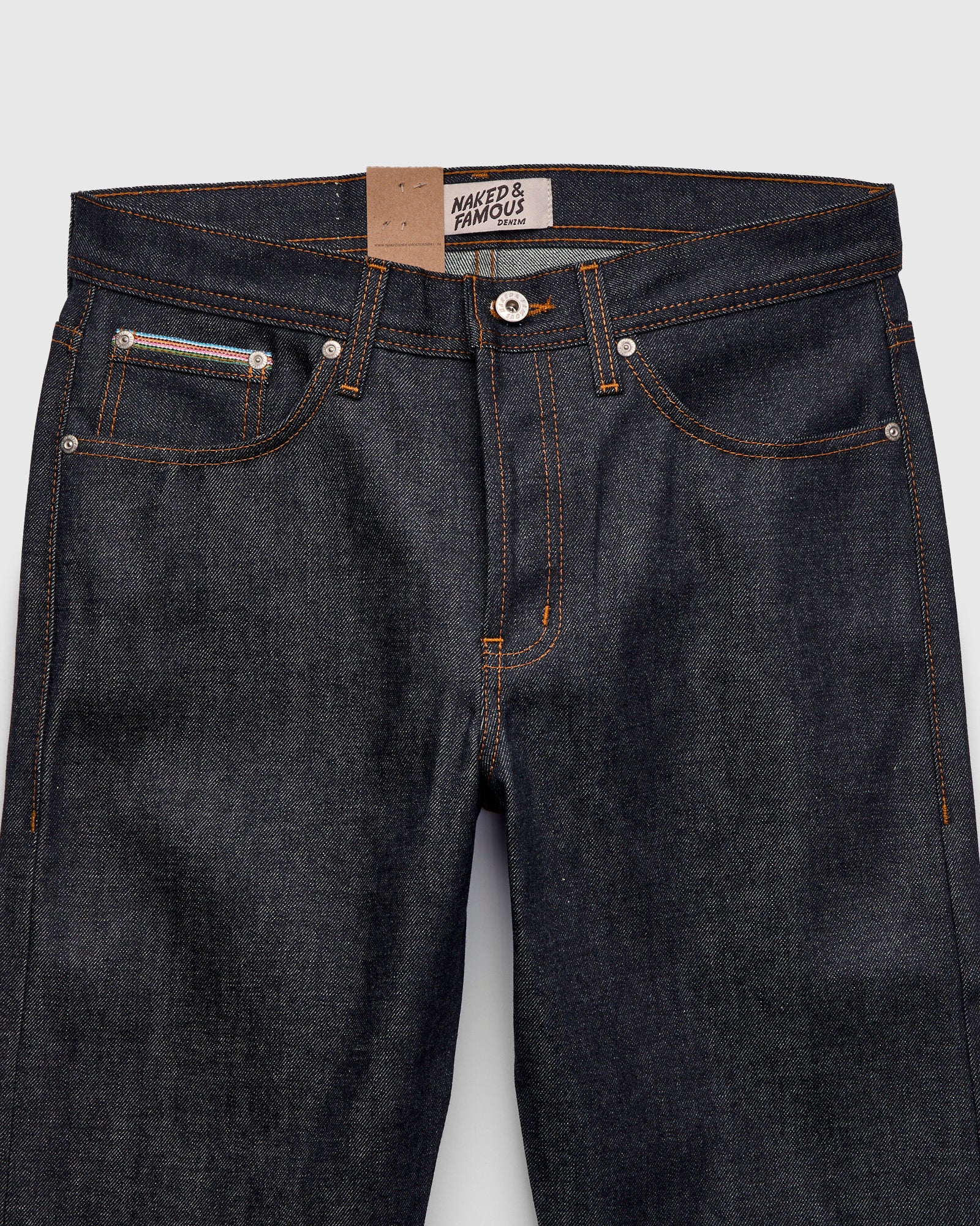 • The versatile Weird Guy fit from Naked & Famous features a medium rise and a moderate taper from the knee to the leg opening