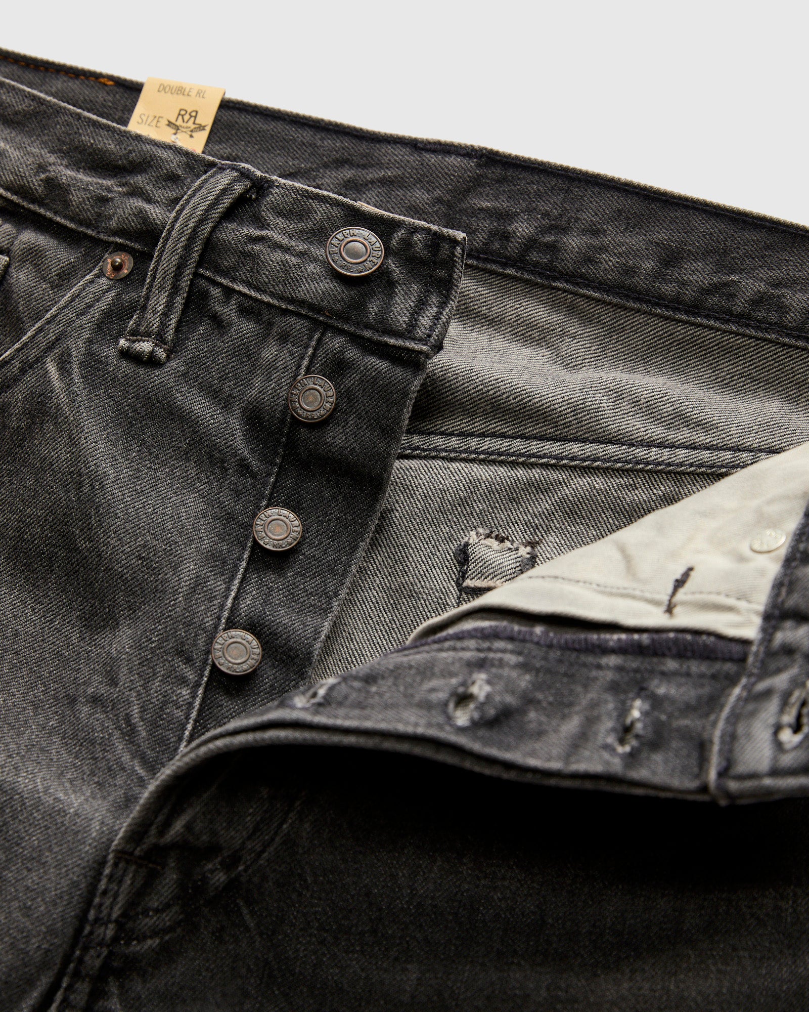 • Cut from 13oz right-hand twill Japanese denim in a dusty black color, these jeans from RRL have undergone a transformative wash process to give the garment a unique worn-in tone. Fitted with all American hardware, debossed logo patch, and RRL's signature back pocket stitching, these jeans capture the spirit of the west with authentic vintage detailing and construction.