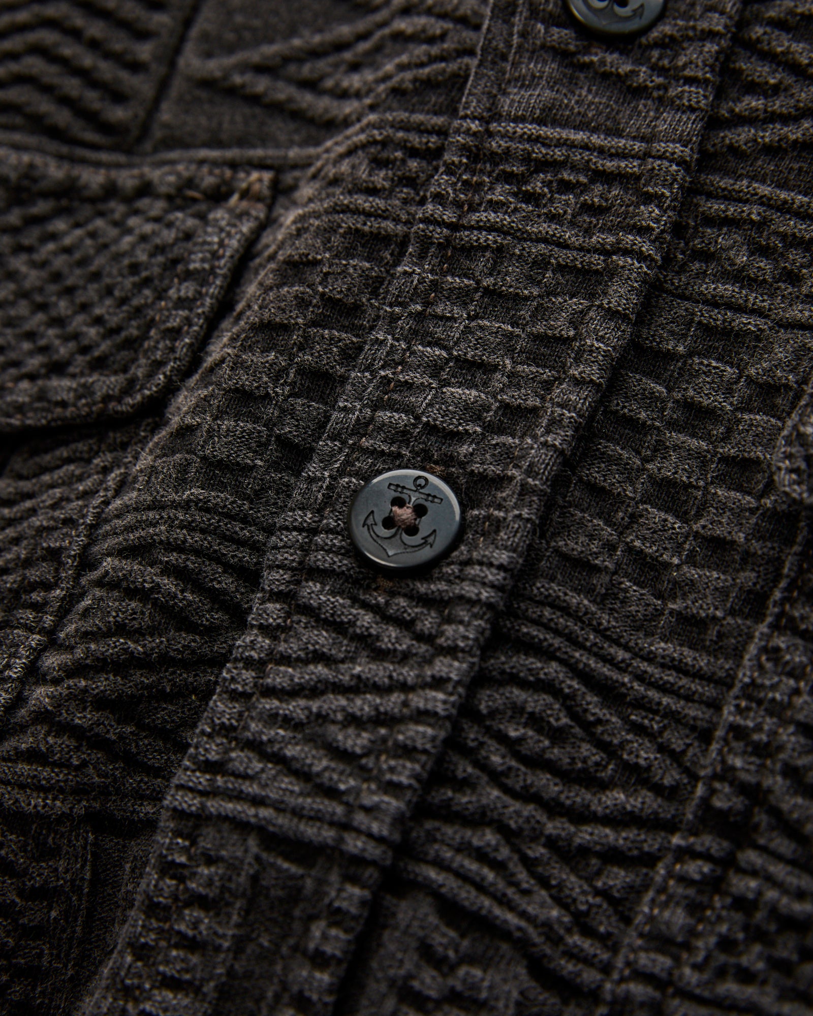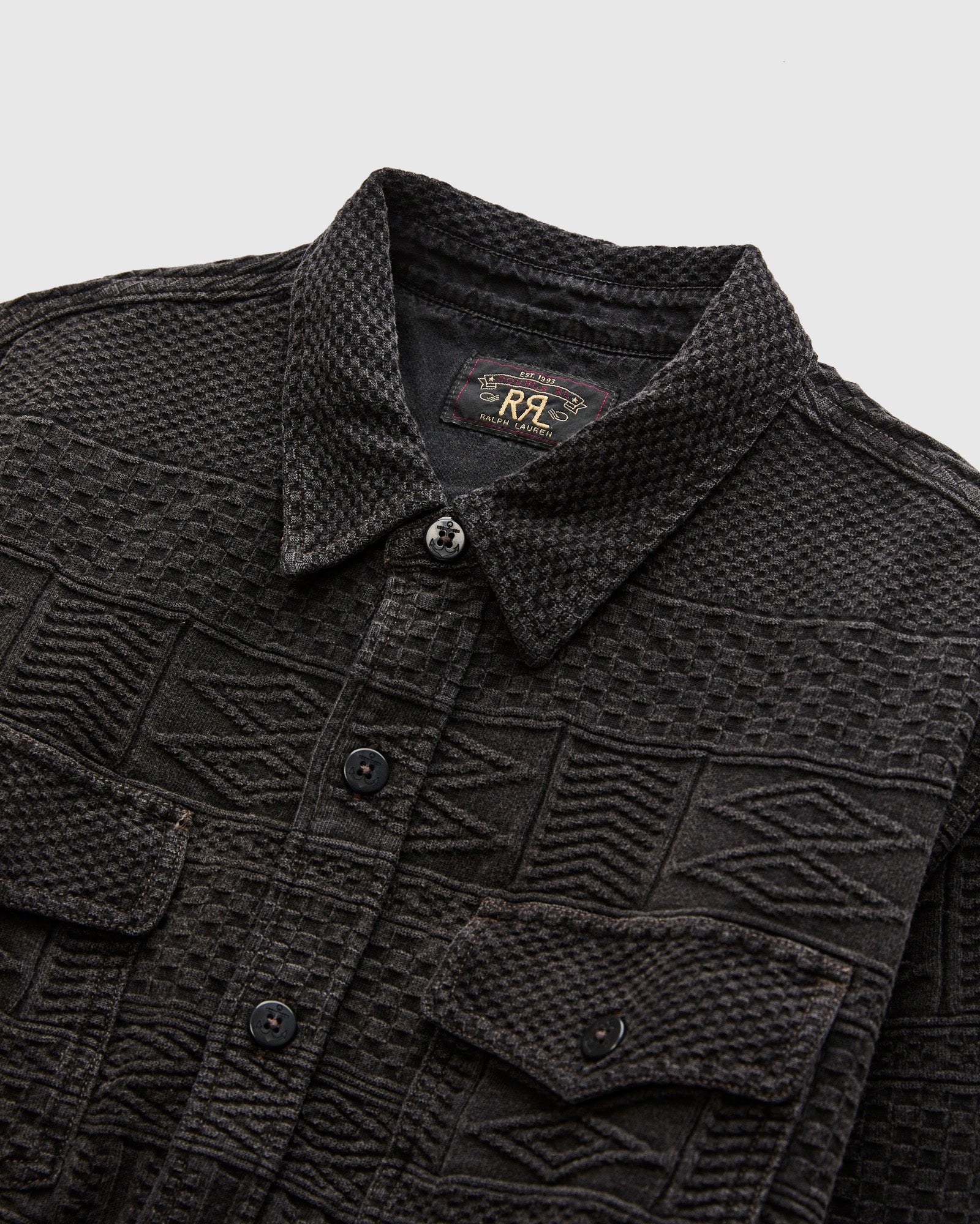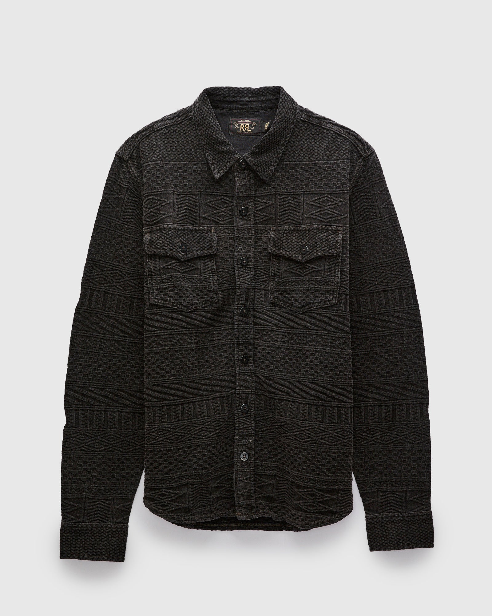 • This special workshirt from RRL is built using a washed-out cotton jacquard fabric with nautical-inspired motifs. Dyed using a mixture of indigo and black dyes, the shirt has undergone a heavy-wash treatment to yield the look and feel of a vintage garment and highlight the jacquard weave's unique texture. Equipped with two utility pockets at the chest, nautical buttons, and interior reinforcements at stress points.