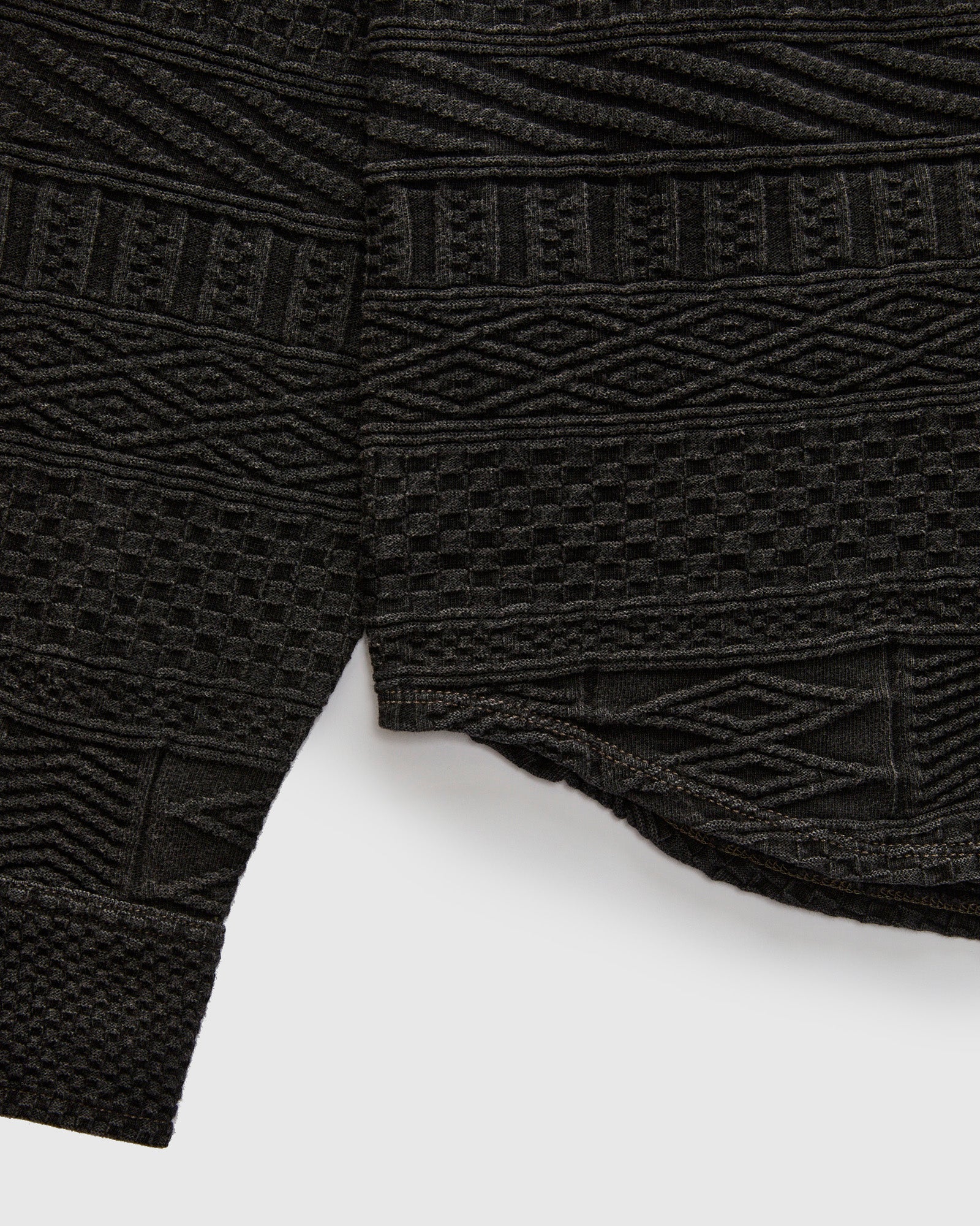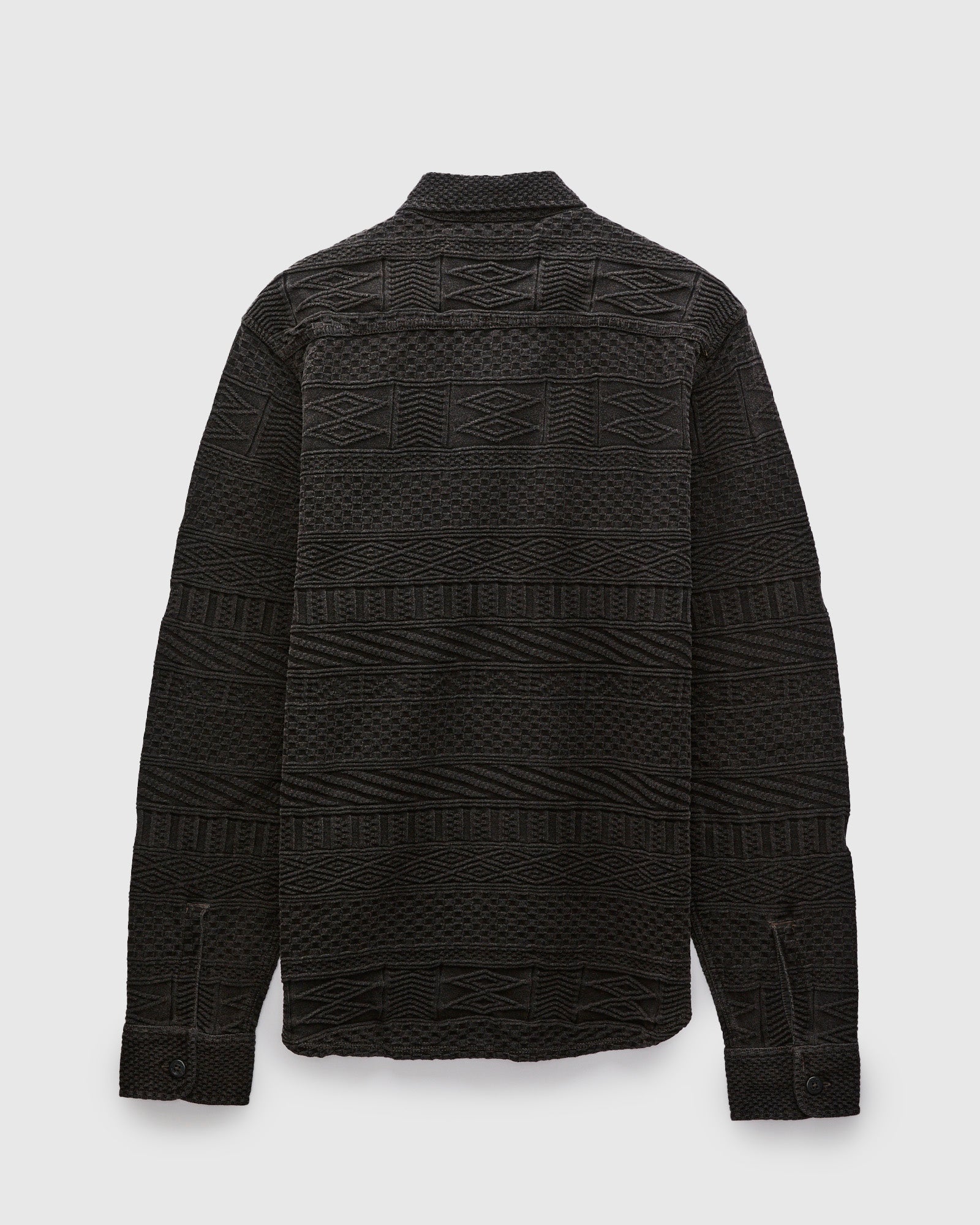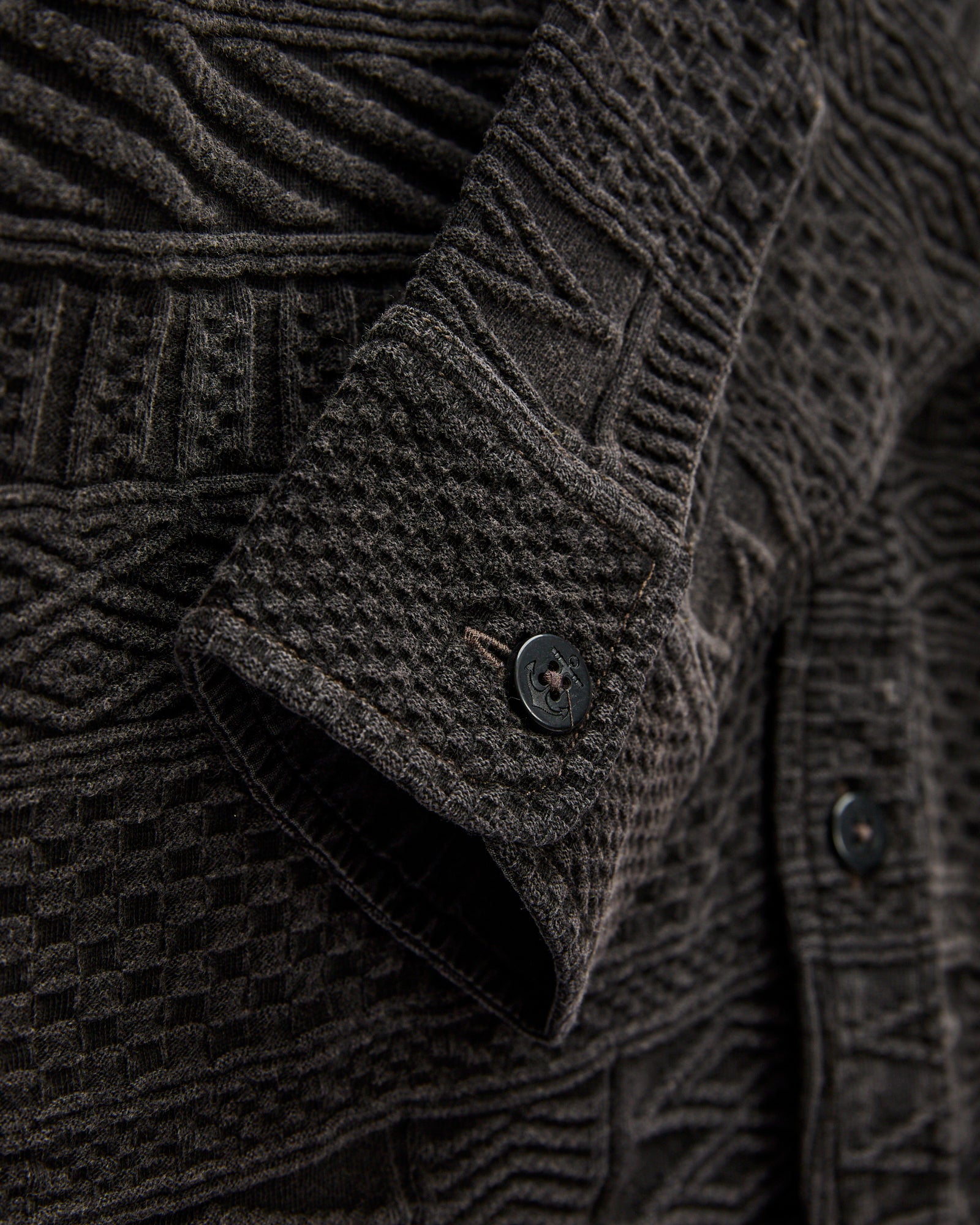 • This special workshirt from RRL is built using a washed-out cotton jacquard fabric with nautical-inspired motifs. Dyed using a mixture of indigo and black dyes, the shirt has undergone a heavy-wash treatment to yield the look and feel of a vintage garment and highlight the jacquard weave's unique texture. Equipped with two utility pockets at the chest, nautical buttons, and interior reinforcements at stress points.