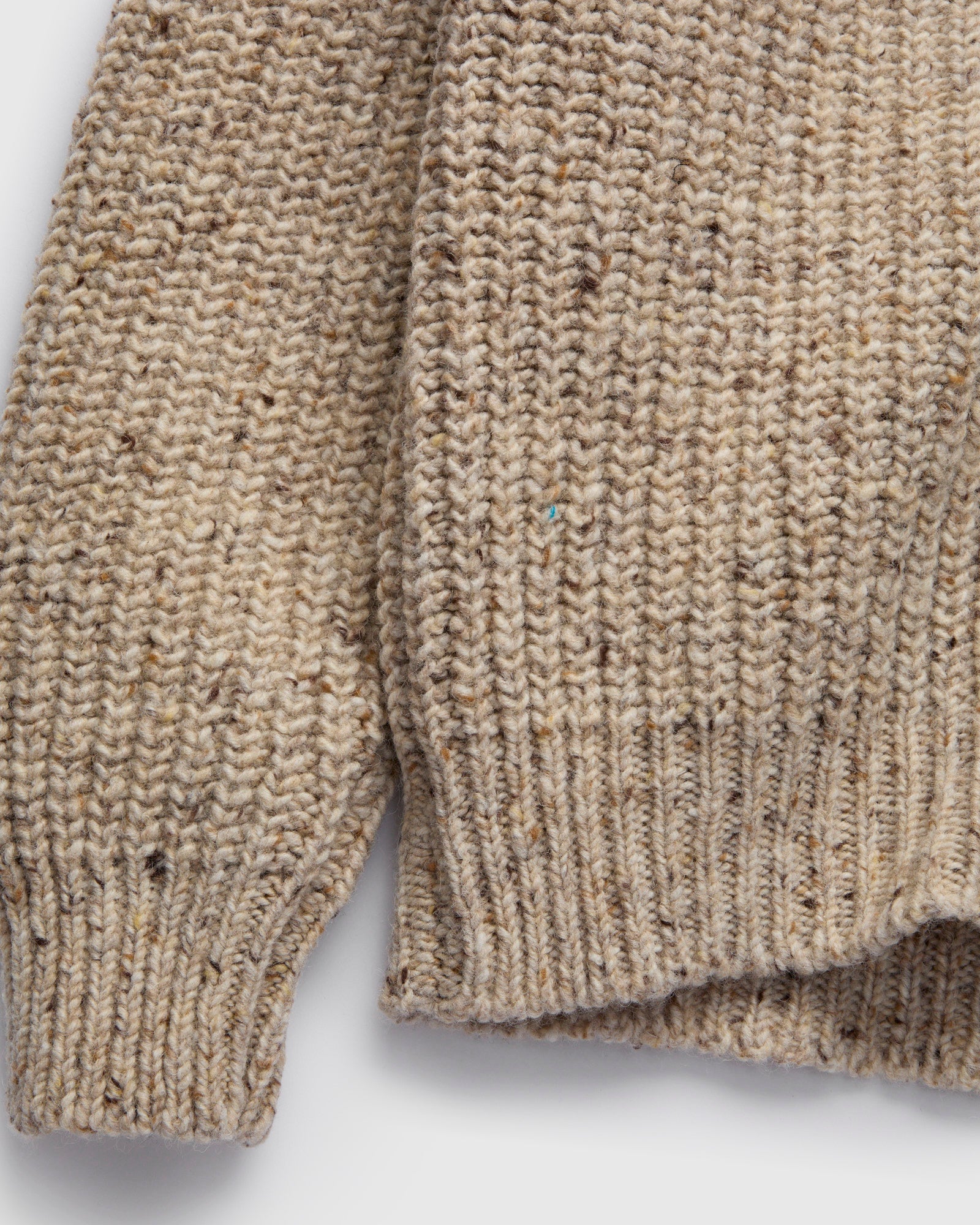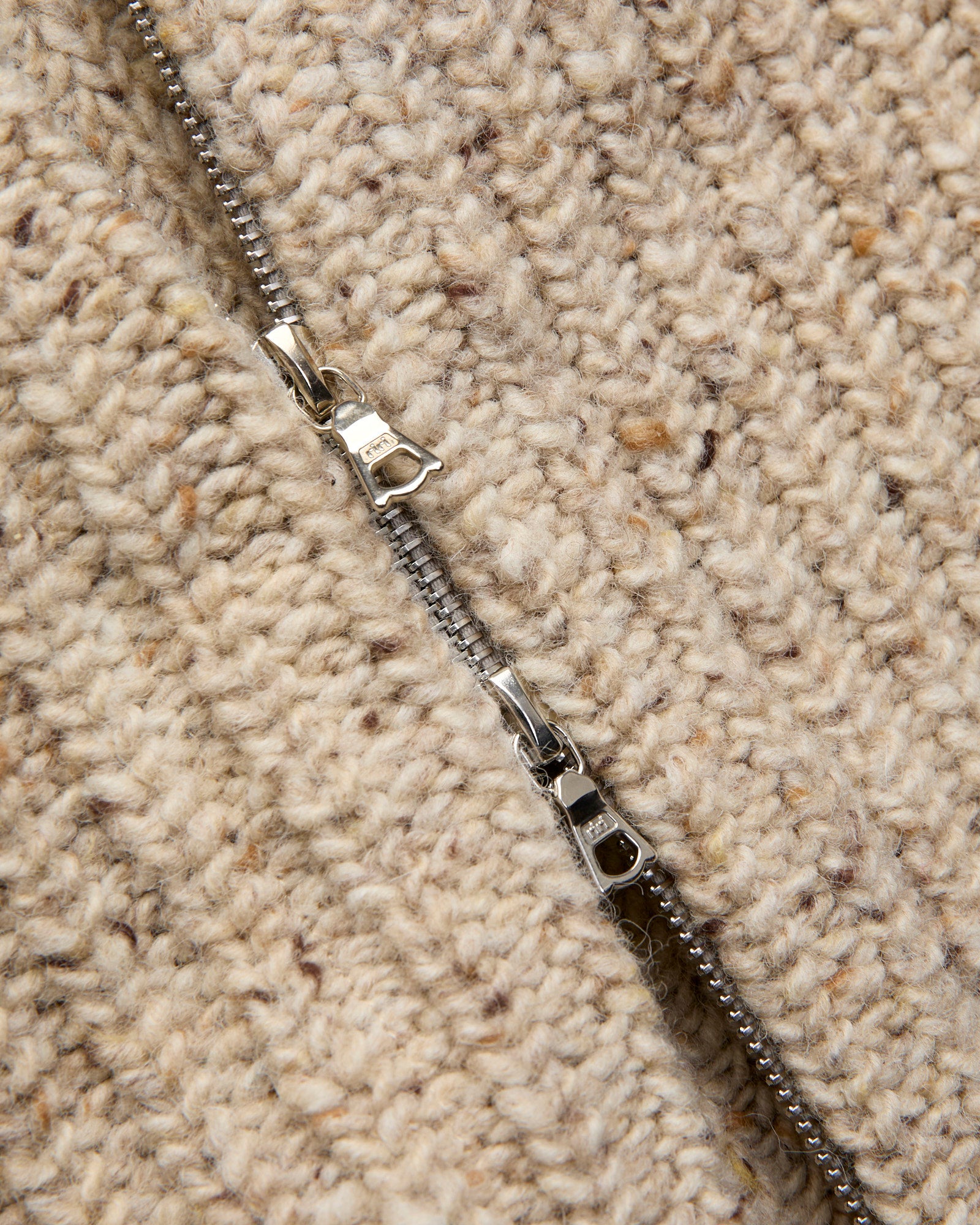 • The Loose Ends sweater from Howlin’ is a heavyweight cardigan knit in Scotland using textured tweed yarn. Woven at a thick gauge with contrasting fleck throughout, the sweater features a comfortable fit and raglan sleeve construction for ease of movement. Finished with a stand collar, ribbed detailing, and a premium 2-way Riri zipper.