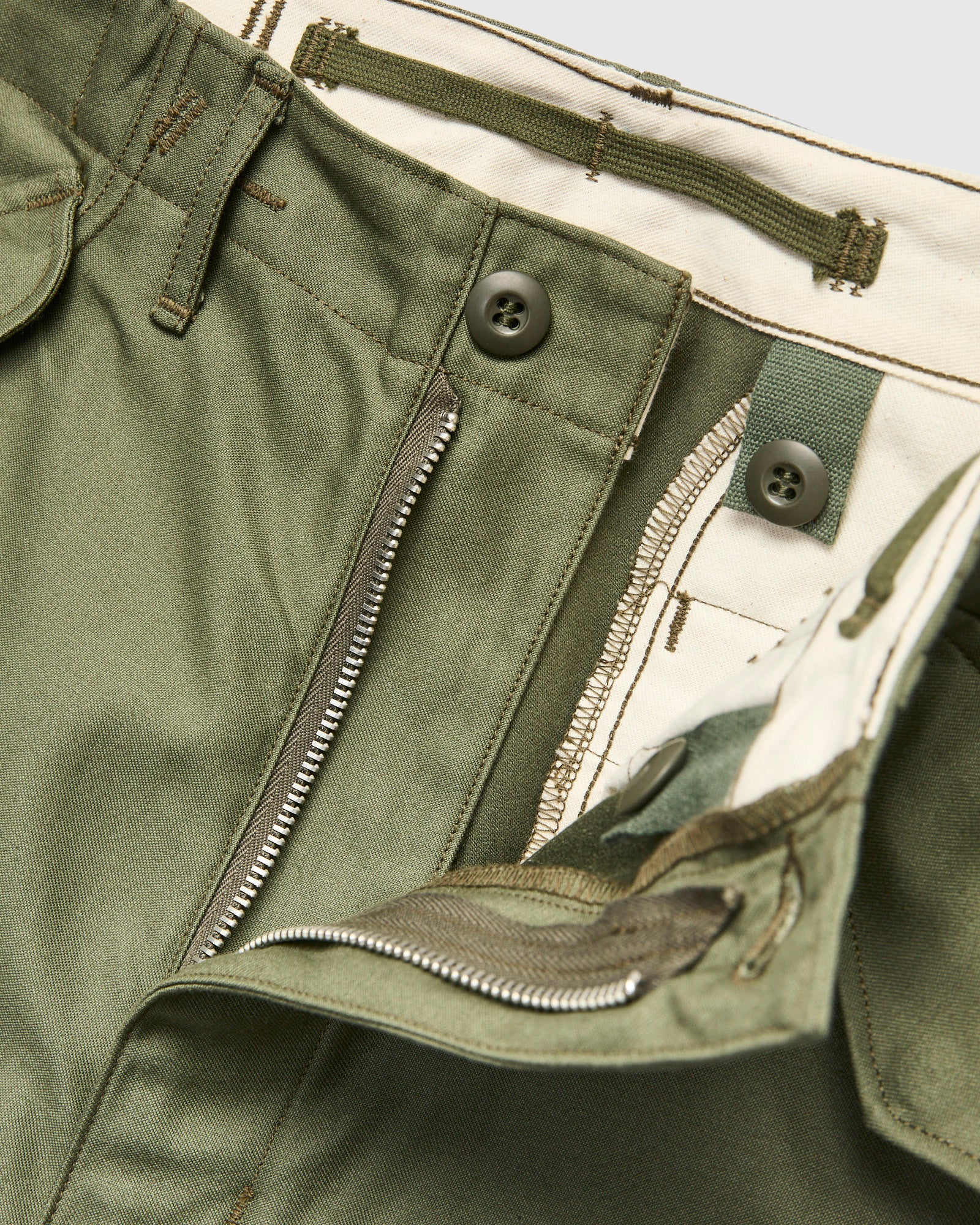 • Introduced during the Vietnam War, the M-65 Trousers were designed as the companion to the M-65 Field Jacket. Developed through the deconstruction and study of vintage military fatigues, The Real McCoy's version closely replicates the original design from yarn to stitch. The cotton sateen fabric is made using yarns spun to mimic the look, feel, and durability of standard-issue garments from the era. The M-65 Trousers are defined by their multi-pocket cargo design and adjustable drawstring leg openings.