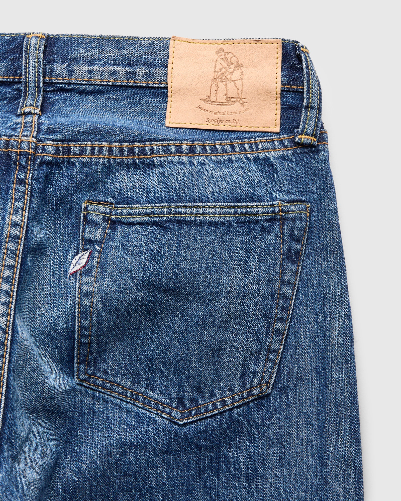 • Signature Pure Blue Japan leaf embroidery on back pocket