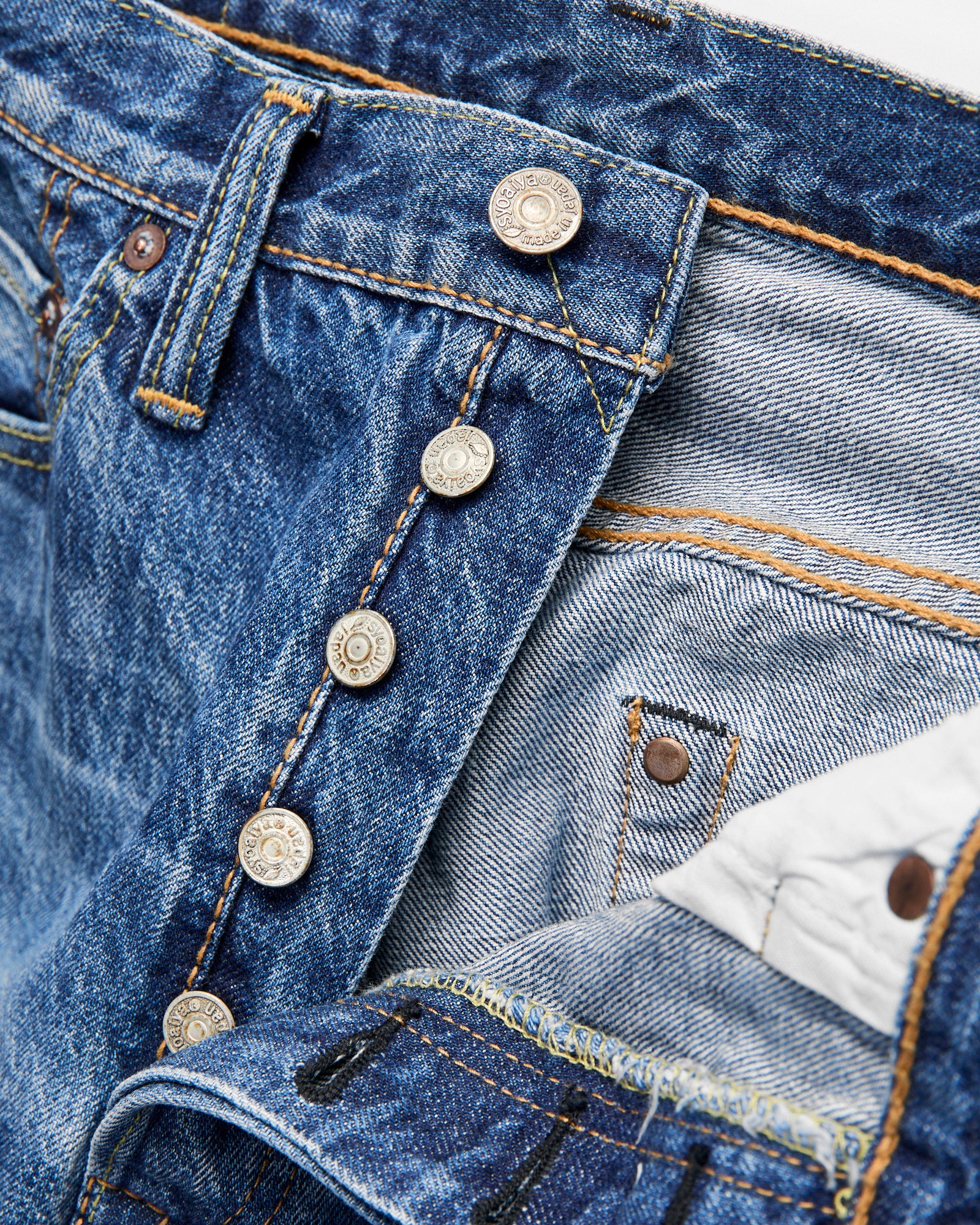 • Custom branded nickel button fly