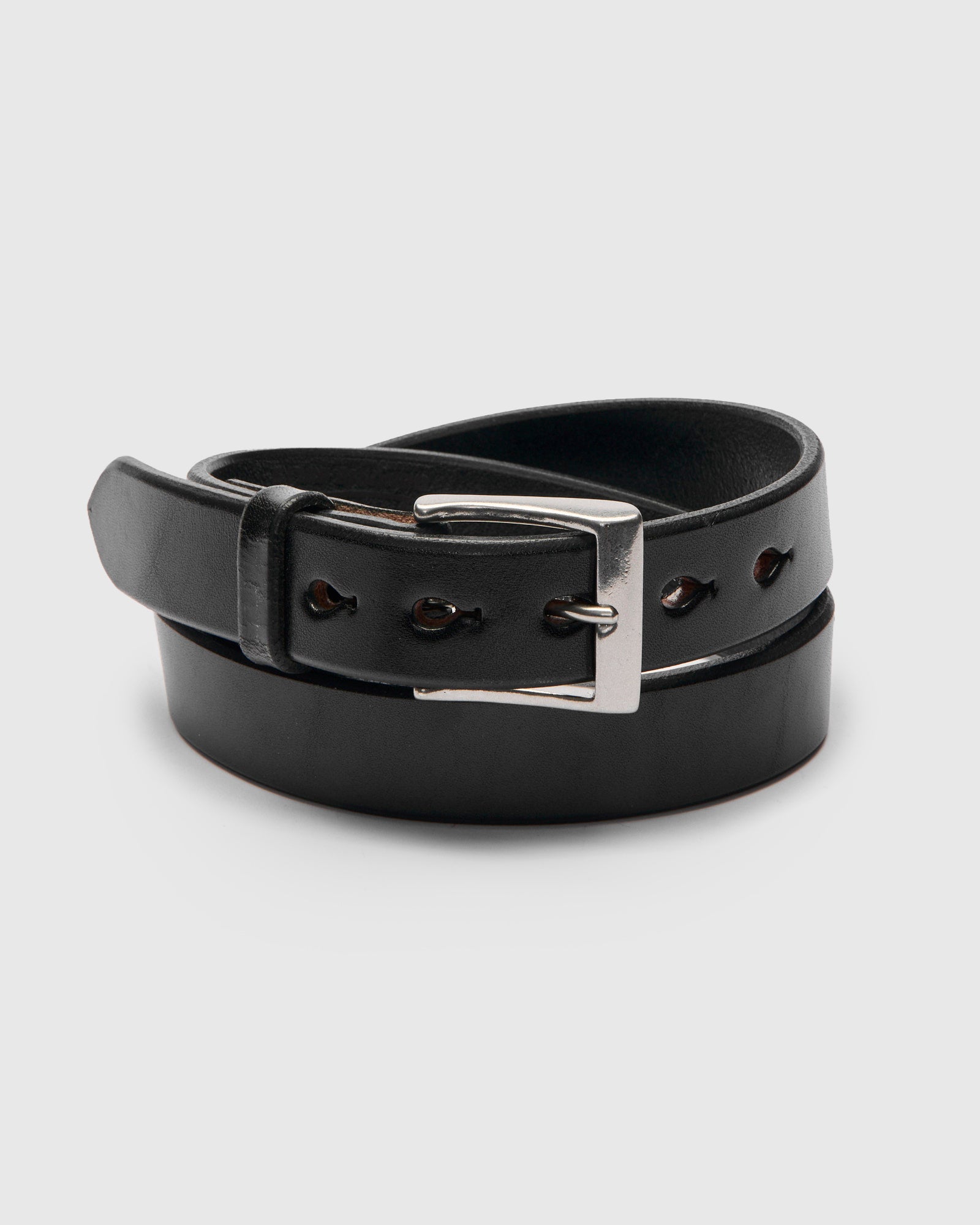 • The Saddle Belt from Pherrow's is crafted from vegetable tanned Japanese saddle leather in a versatile 33mm width. Finished with a silver-tone brass buckle and tear-drop eyelets.