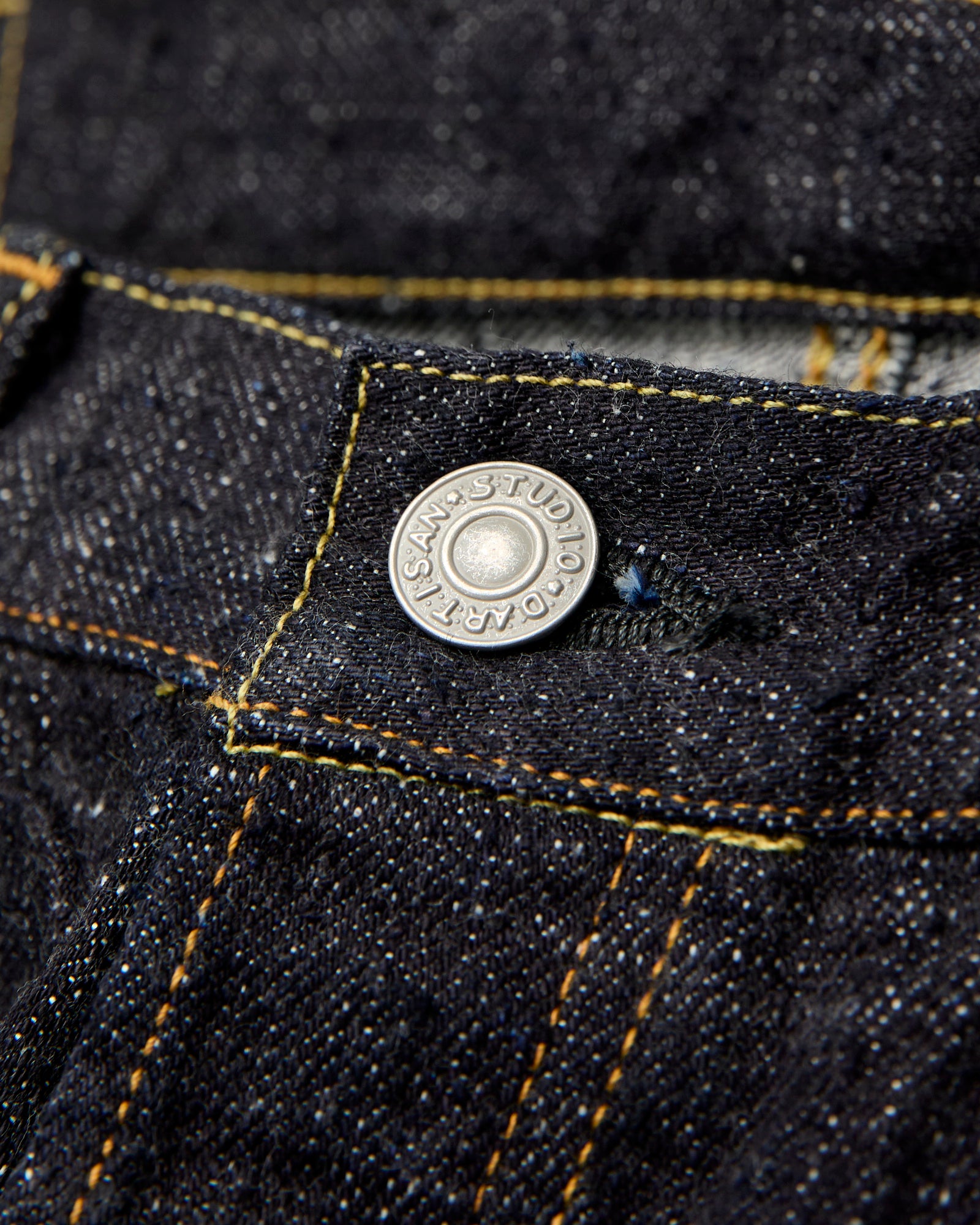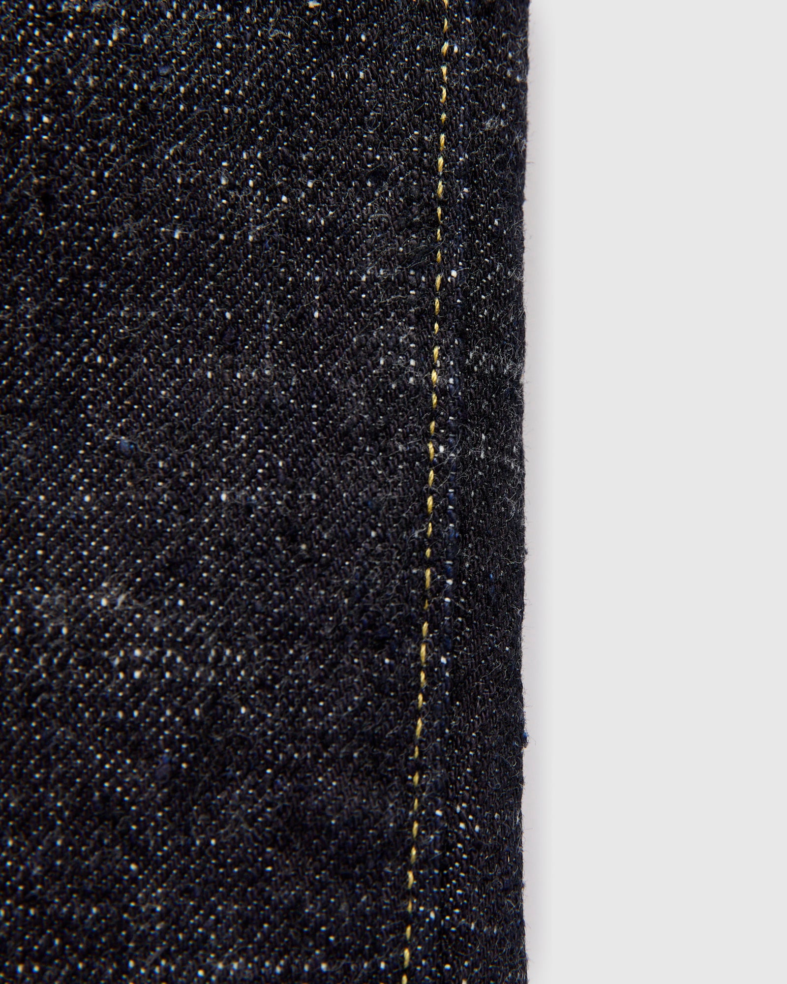• Woven on original Toyoda GL3 power looms, Studio D'artisan's new GL3 fabric captures the essence of vintage workwear. While the loom can only weave 5 meters of fabric per hour, it creates a unique and uneven roughness which cannot be replicated by any other machine. Using thick rope-like cotton yarns, SDA repeatedly dips the yarn in indigo to achieve the darkest possible color. The denim has been given a one-wash rinse treatment to eliminate shrinkage, leaving them ready to be worn right away, no soaking required.