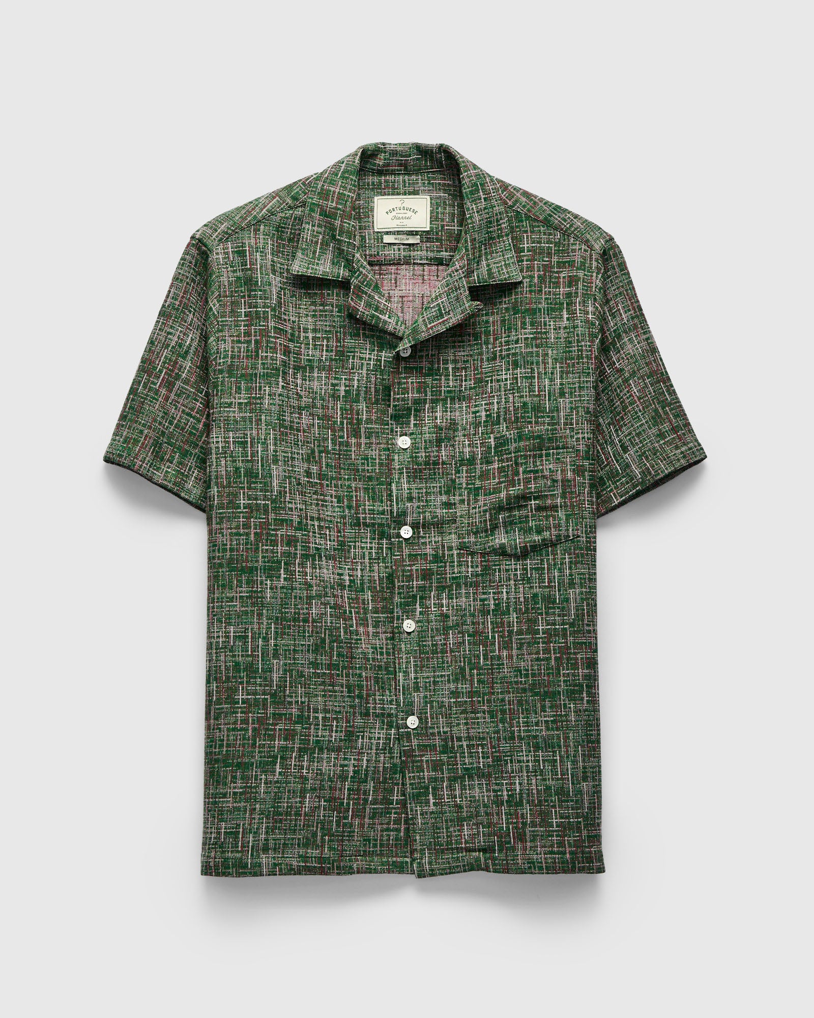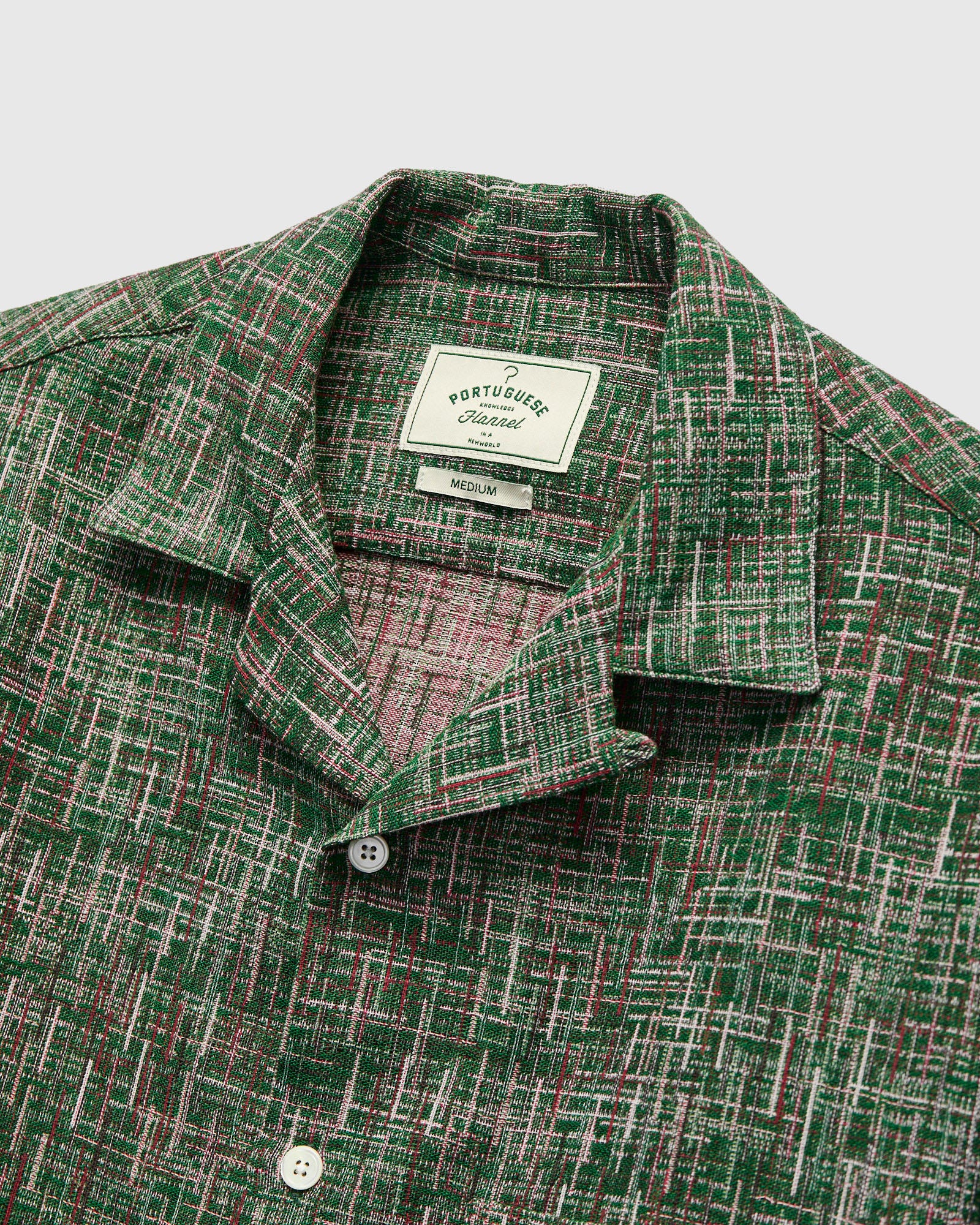 • The Summer Boucle shirt from Portuguese Flannel is a versatile short sleeve made using fabric from the brand's storied archive. Built using a lightweight cotton fabric woven for ample breathability in warm weather. The shirt comes fitted with a camp-collar, single chest pocket, and straight hem finish.