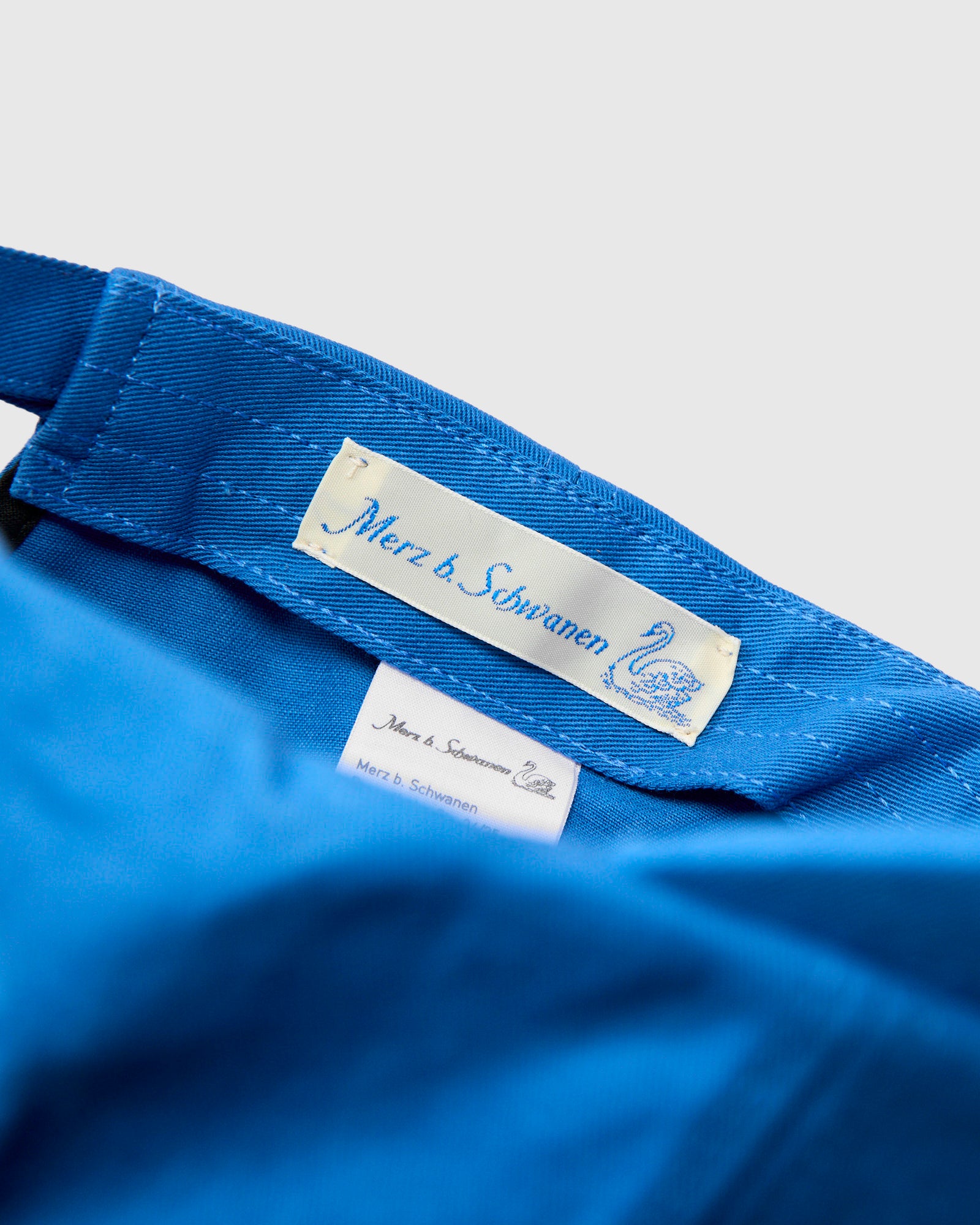 • The Swan Logo Cap is a low-profile baseball cap embroidered with Merz b. Schwanen's swan logo motif at the crown. Made using organic cotton twill in a classic six-panel design, the hat features tonal eyelets and an adjustable rear strapback.