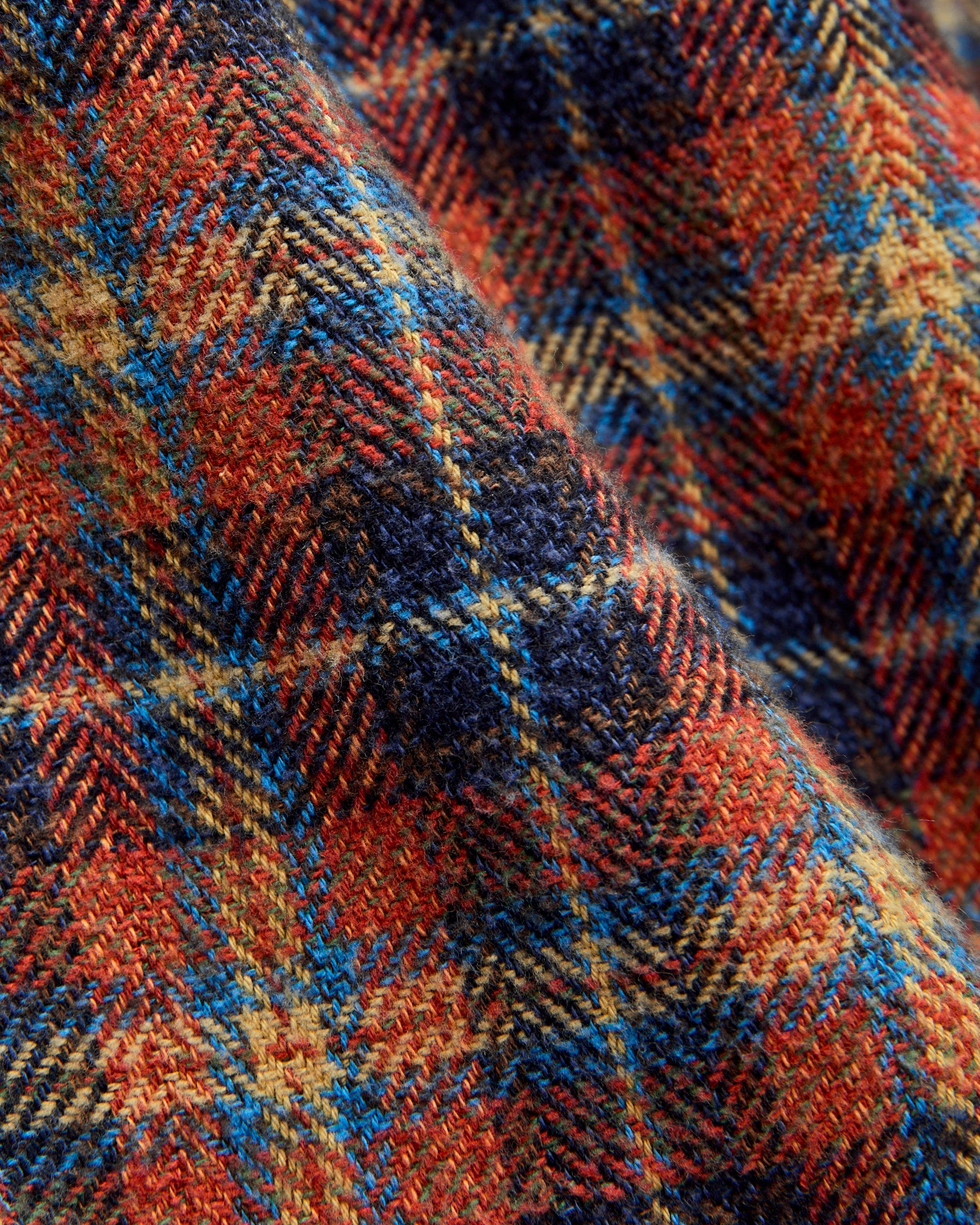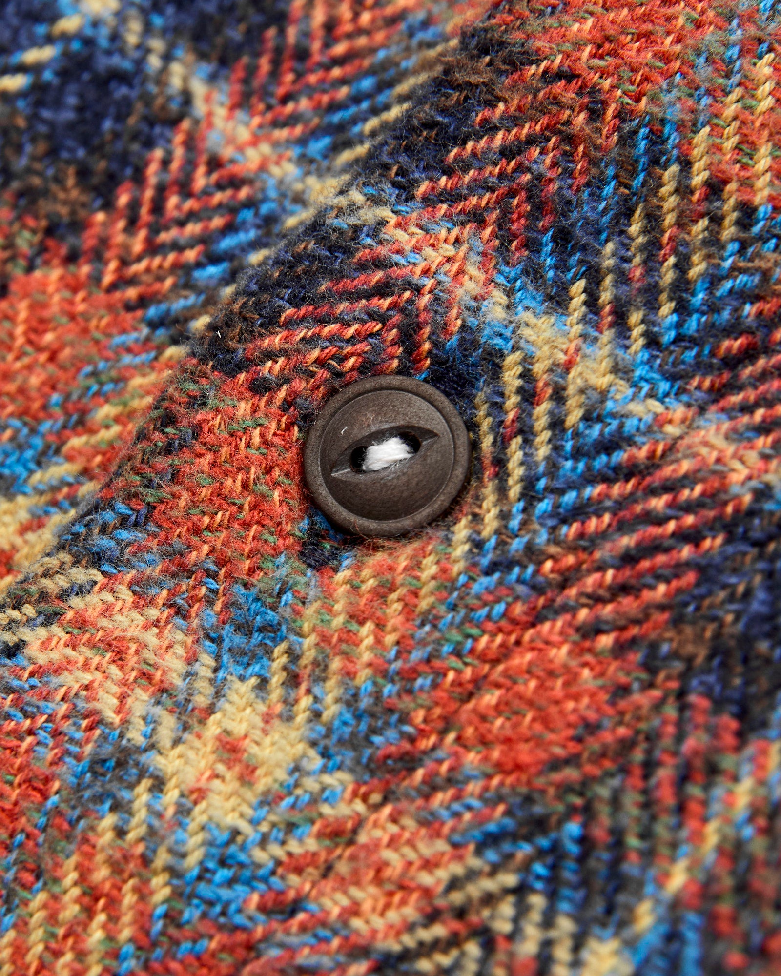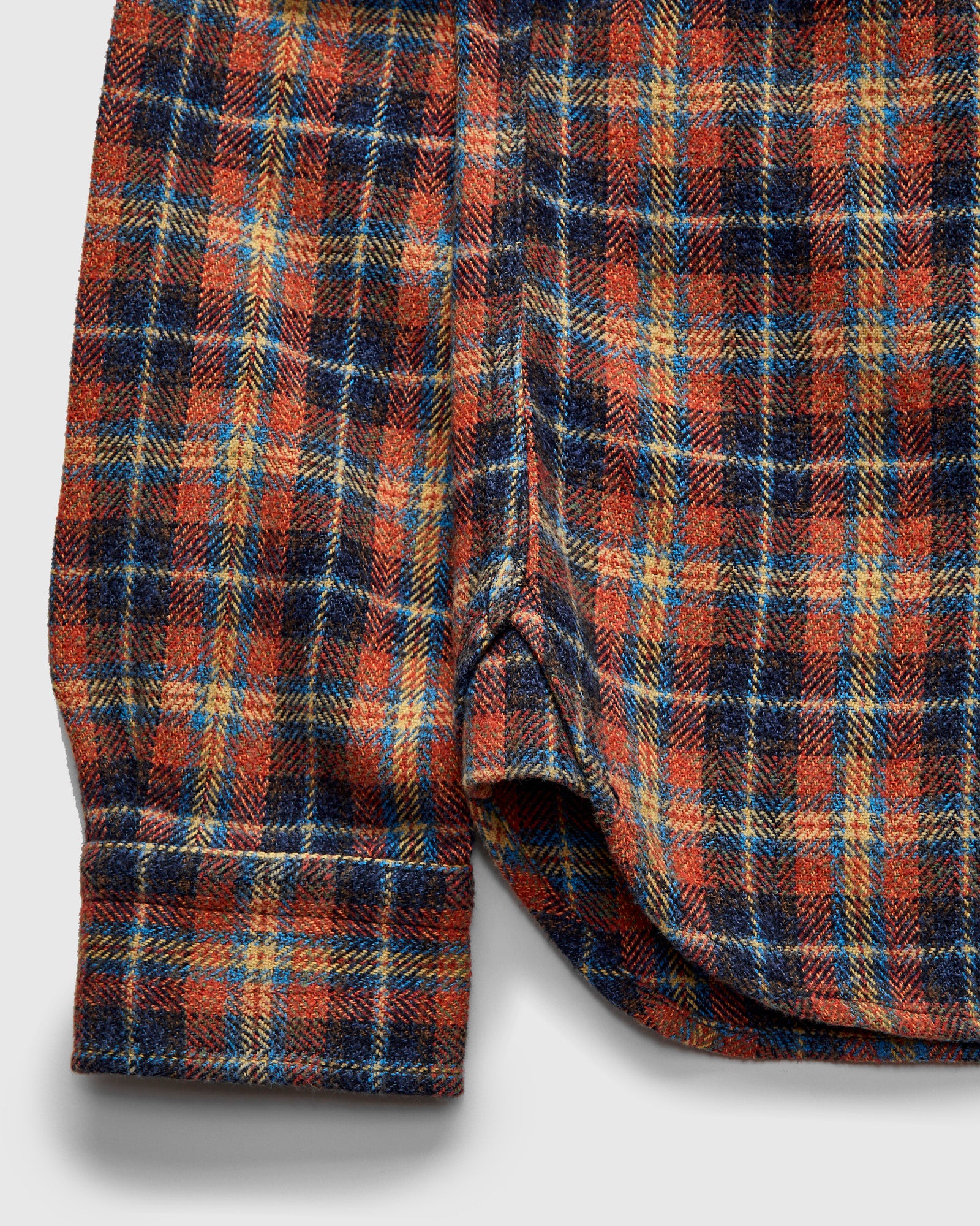 • Cut in a slim fit, the Kato Ripper shirt is crafted from a 9oz triple twisted plaid fabric at the brand's Los Angelas factory. The triple twist plaid fabric features a heavily textured appearance resembling traditional English woolen plaids. Woven at a comfortable 9oz weight, the shirt sports a single chest pocket and contoured hem.