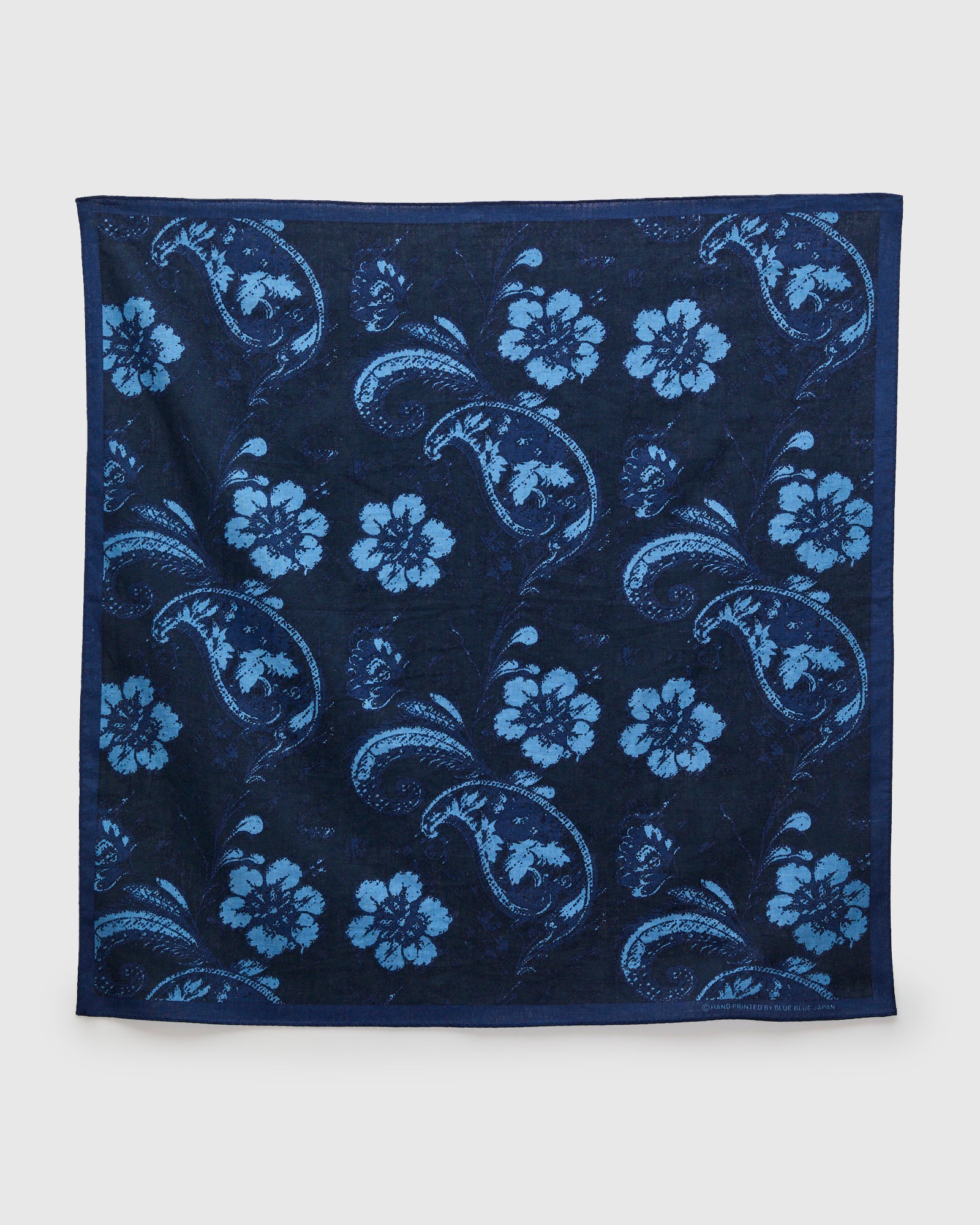 • This bandana from Blue Blue Japan is crafted from pre-washed cotton and features a print of floral and paisley motifs. Tsujigahana is an ancient Japanese dyeing technique that involves resist stitching and tie-dyeing to create intricate designs on fabric. Hand printed in Japan, the bandana's print references the irregular lines commonly found in tsujigahana patterns.