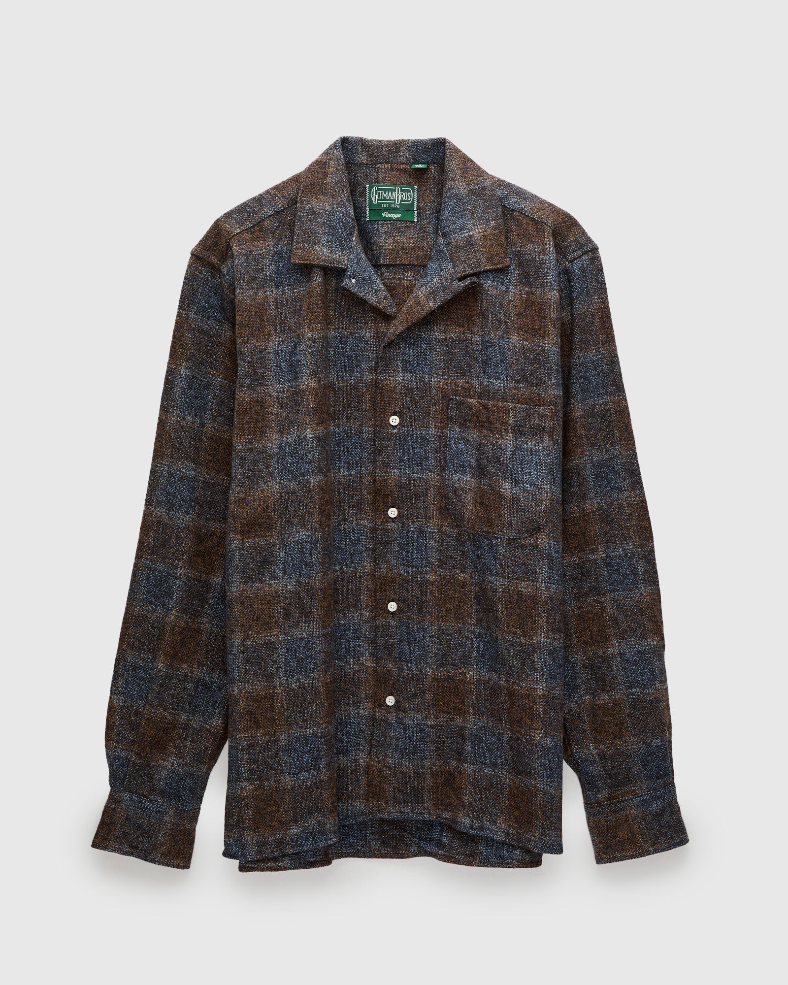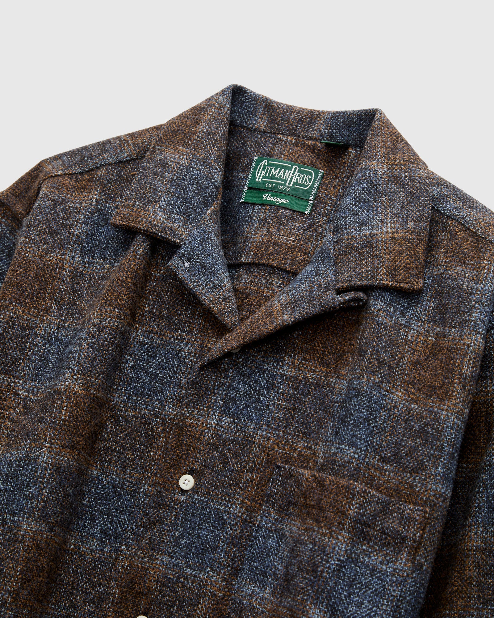• This button-up shirt from Gitman Vintage is made in the USA from a soft brushed tweed fabric. The shirt sports a textured, warm appearance with the depth and character typical of the brand's signature shirting. The camp shirt style features a relaxed fit, open collar, and straight hem cut designed for a more casual look.