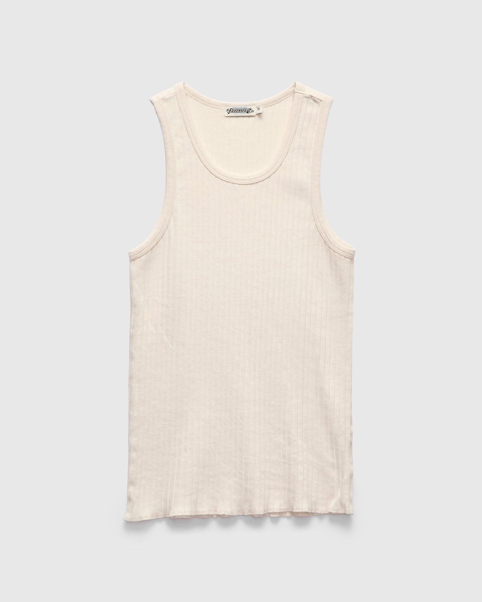 • Sewn in the USA, this tank-top features a 5oz ribbed knit from Japan. The ribbed knit is woven with a comfortable stretch designed to maintain it's shape over time. The tank-top has undergone a rinse process to eliminate shrinkage.