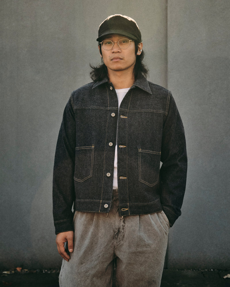 Wool Denim Trucker Jacket in Indigo