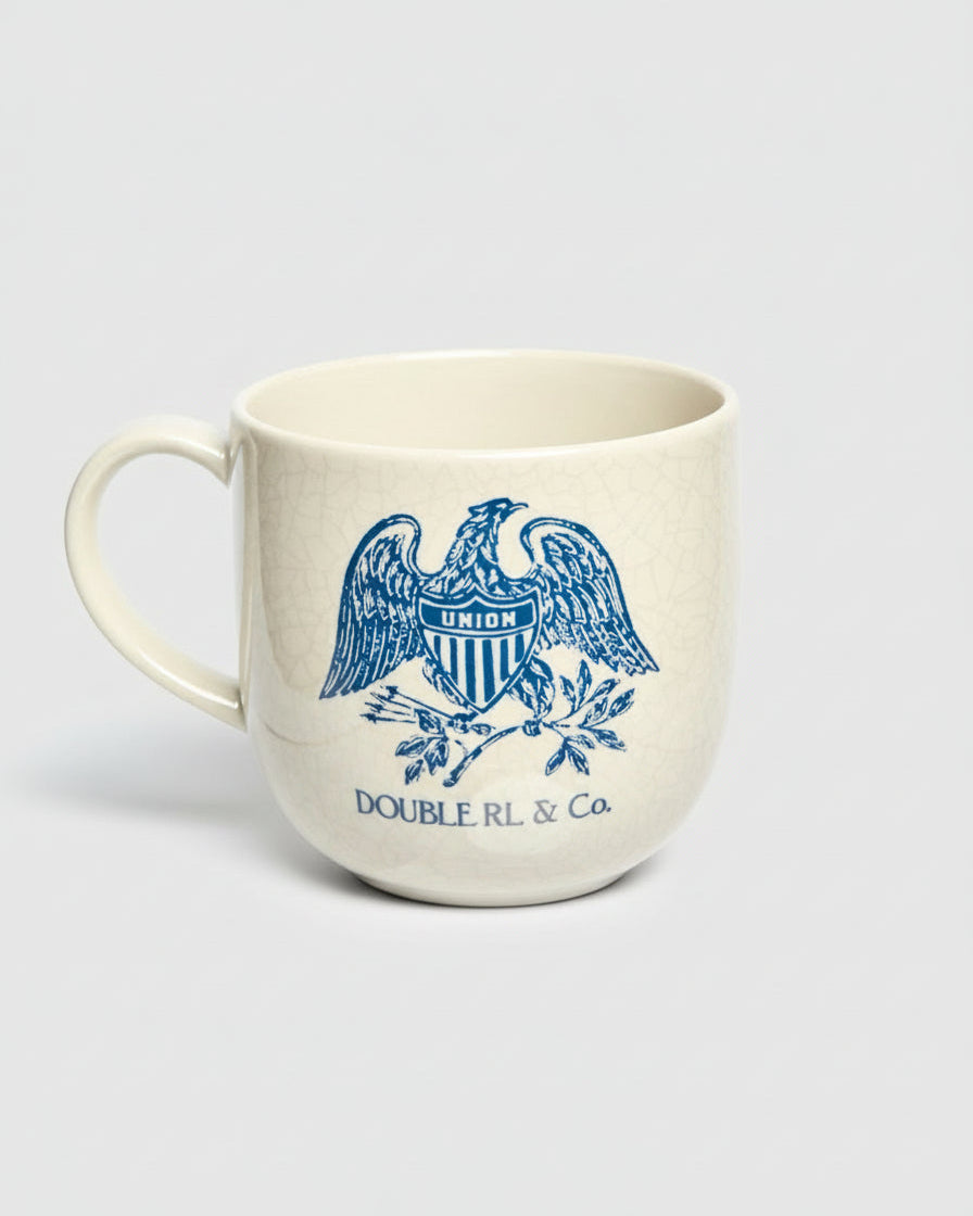 • A special holiday release from RRL, the Souvenir Mug offers the brand's iconic logos and branding atop a classic coffee mug design. Crafted with a vintage-inspired crackle finish, this dishwasher safe mug features a printed design on a cream stoneware mug and is delivered in a signature RRL box.