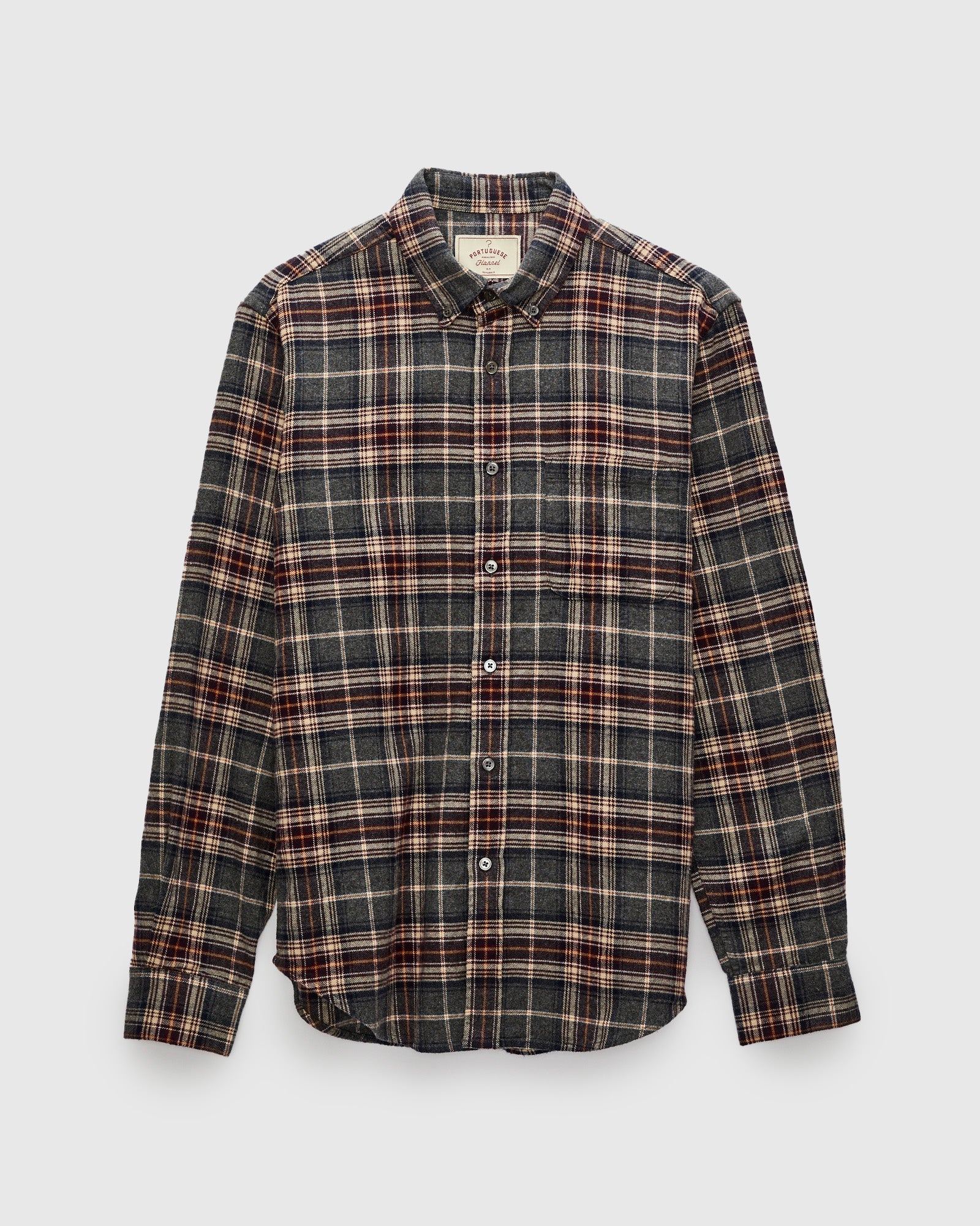 • The "Augusta" button-up from Portuguese Flannel is a timeless flannel shirt made using fabric from the brand's storied archive. This shirt features a fine flannel pattern atop a soft cotton base that has been brushed for extra comfort and texture. Fitted with a single chest pocket and cut in a slim fit silhouette with a curved hem.