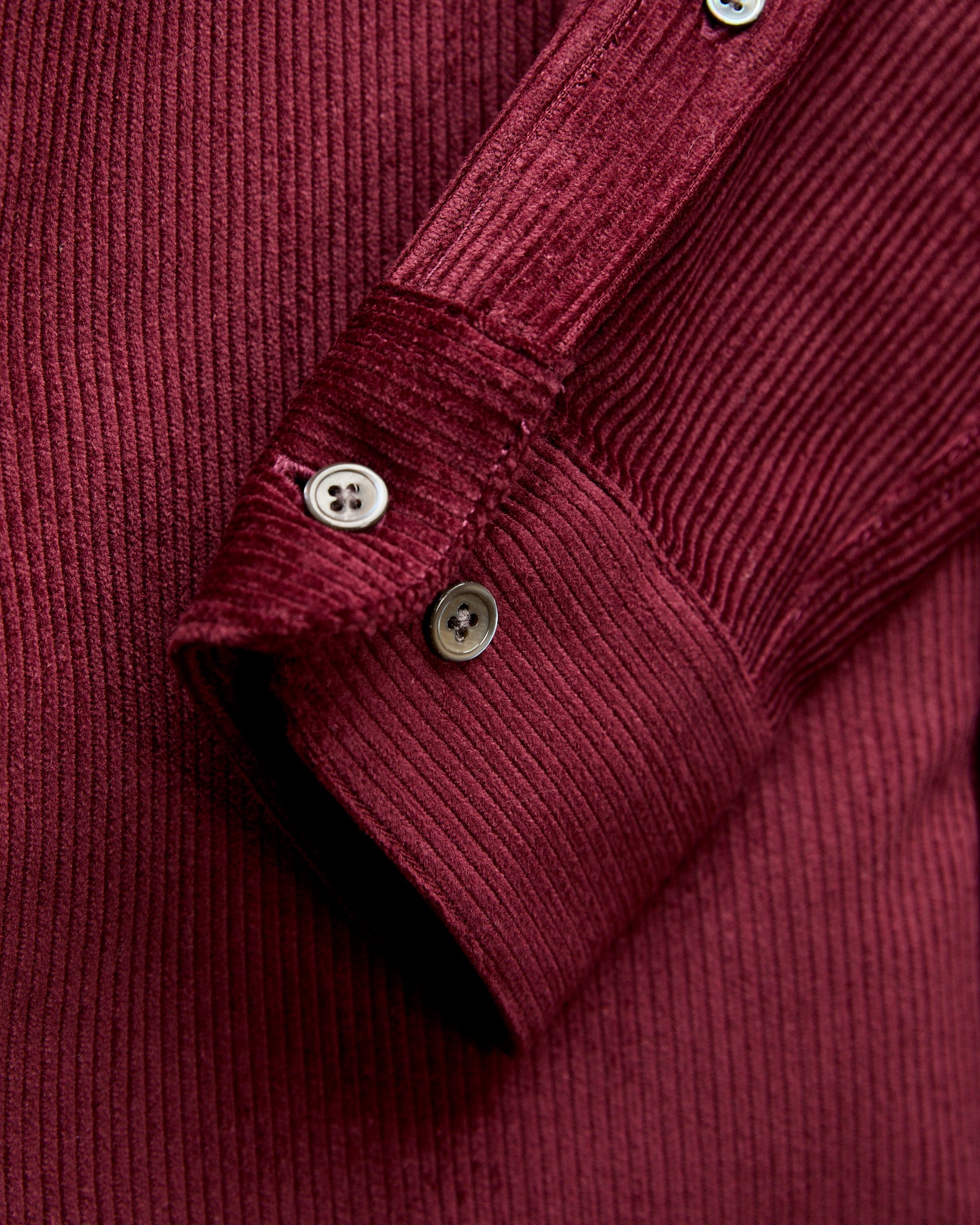 • The "Lobo" button-up from Portuguese Flannel is a timeless shirt made using fabric from the brand's storied archive. The shirt is made from a Portuguese corduroy fabric woven at a sturdy medium-weight with a soft brushed hand. Fitted with a single chest pocket, and cut in a slim fit silhouette with a curved hem.