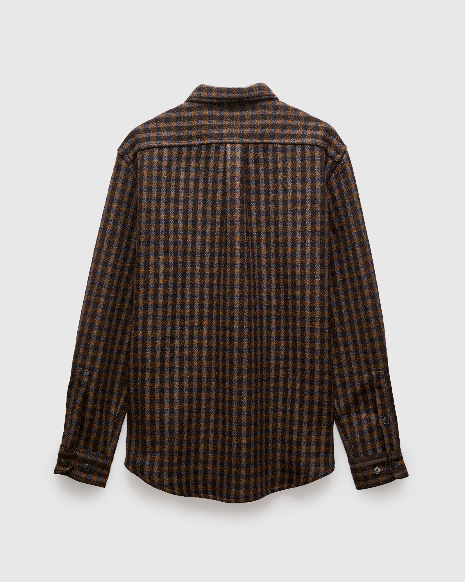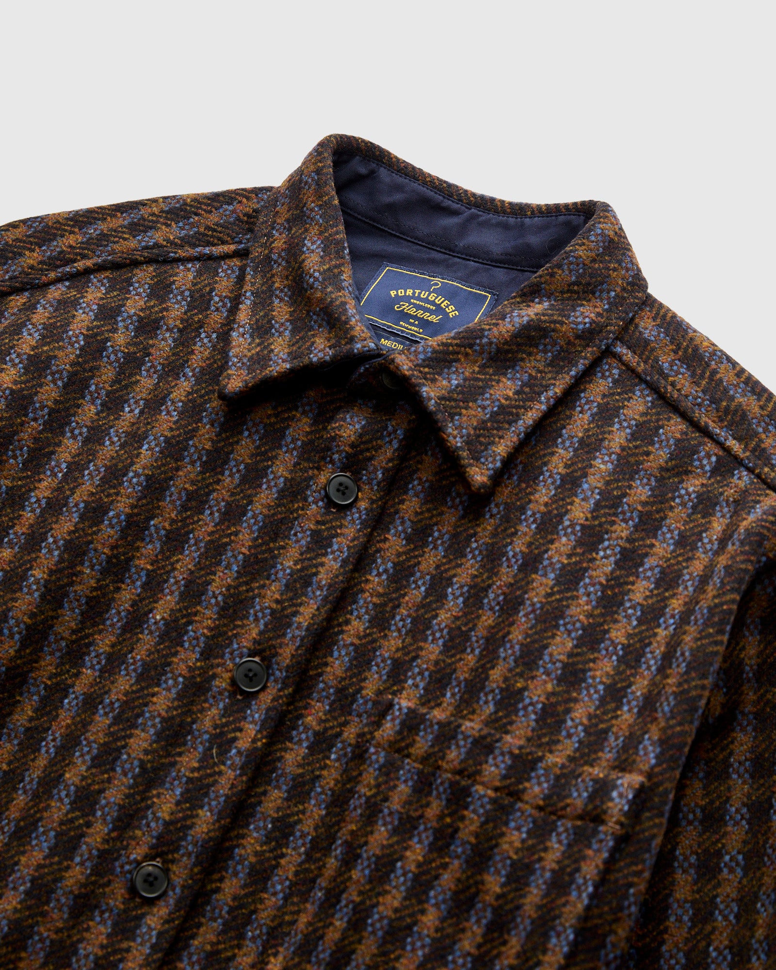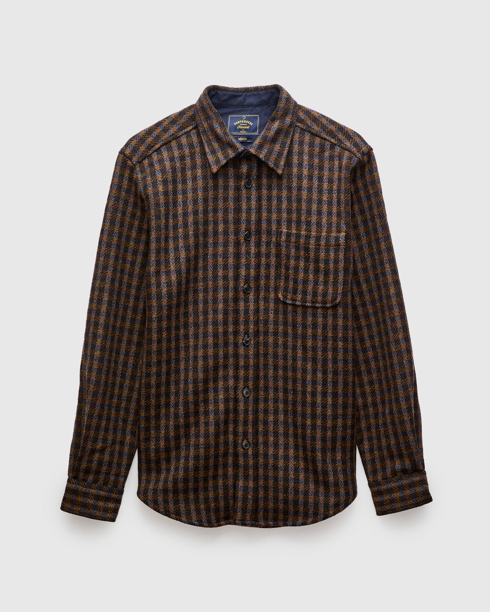 • The Merino Tweed button-up shirt from Portuguese Flannel is a thick shirt-jacket style made using fabric from the brand's storied archive. The shirt is made from a merino tweed flannel fabric woven with a structured-dense weave and soft hand. Fitted with a single chest pocket, lined yoke, and cut in a slim fit silhouette with a curved hem.