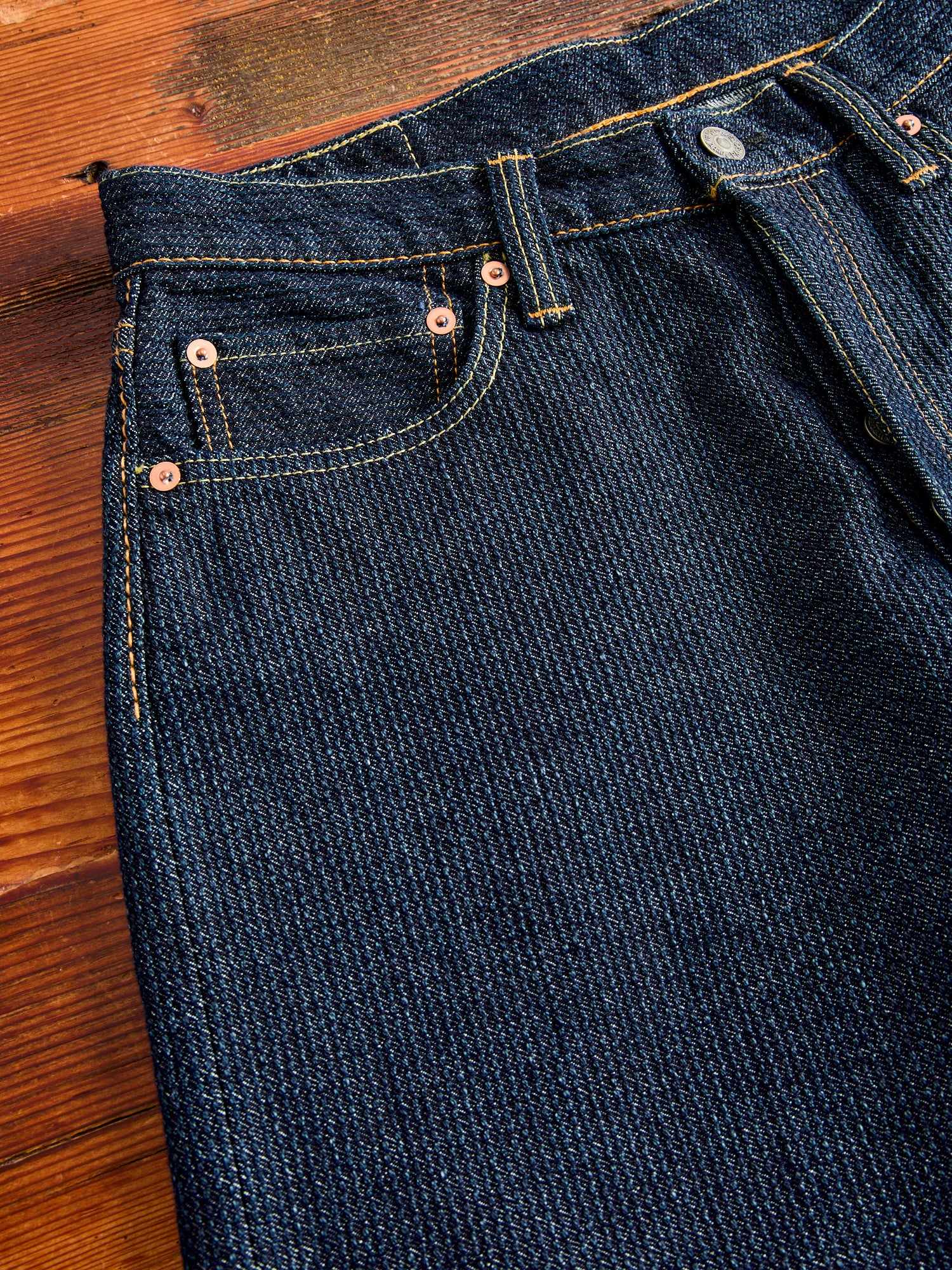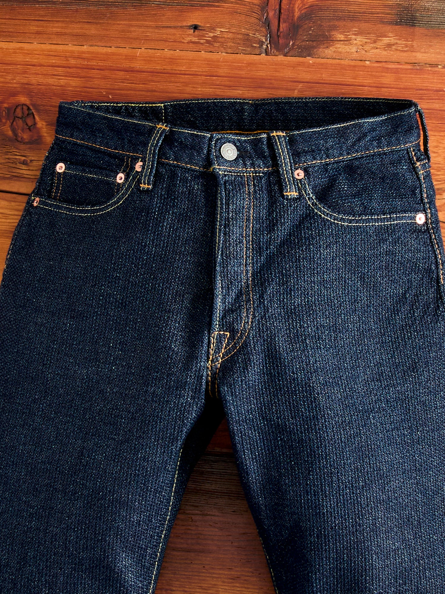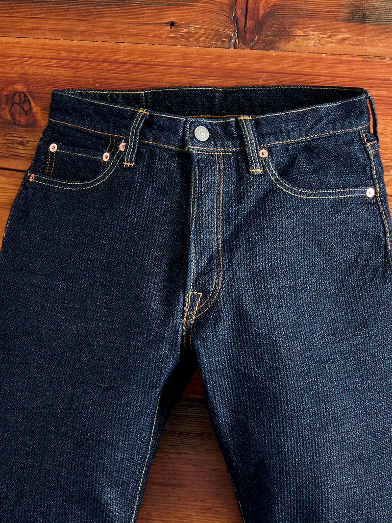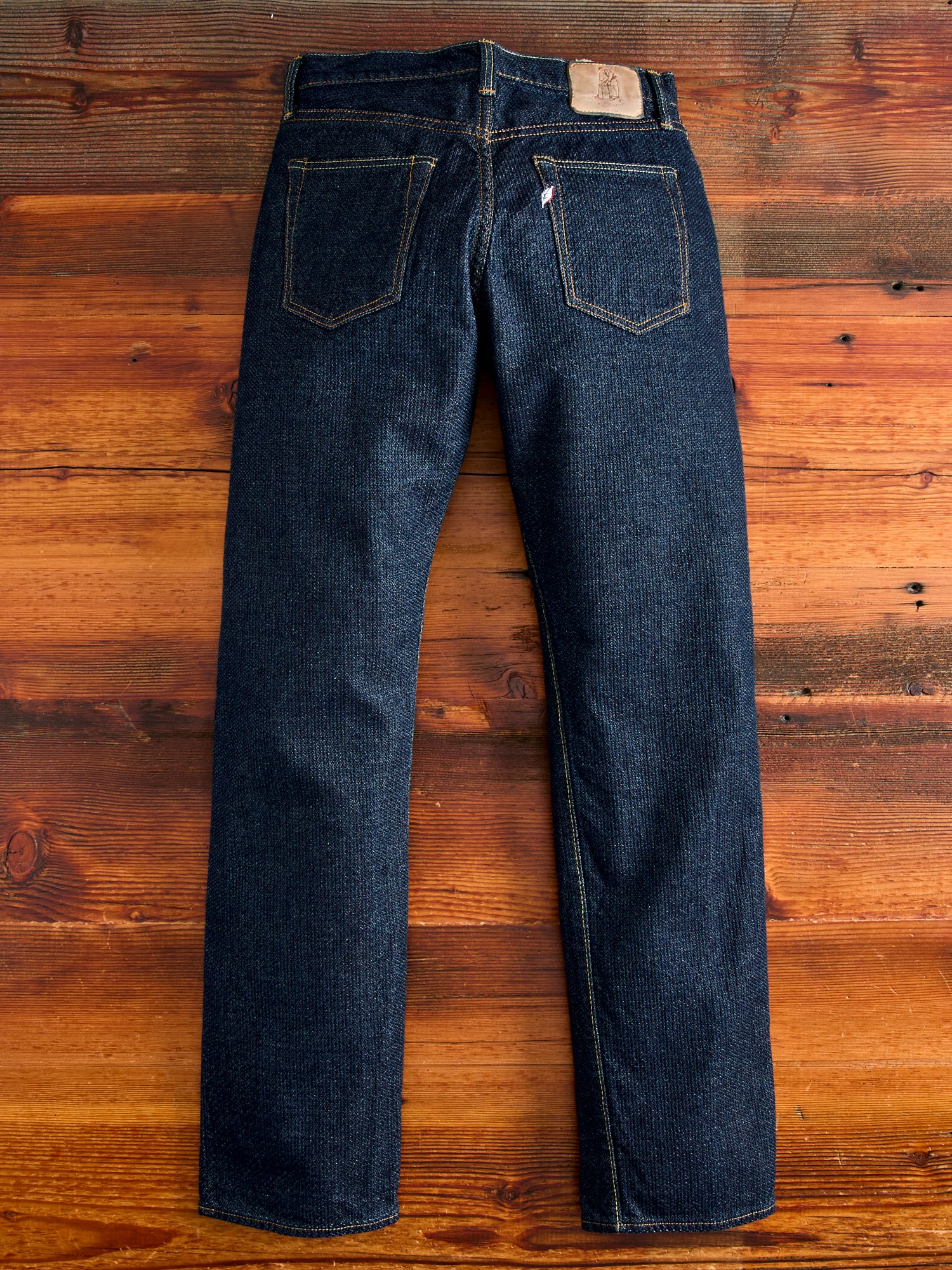 • The Regular Straight (003) fit from Pure Blue Japan has a medium-high rise with a classic straight fit through the leg and a very slight taper at the ankle