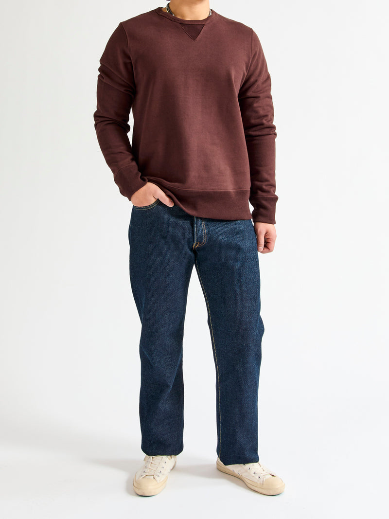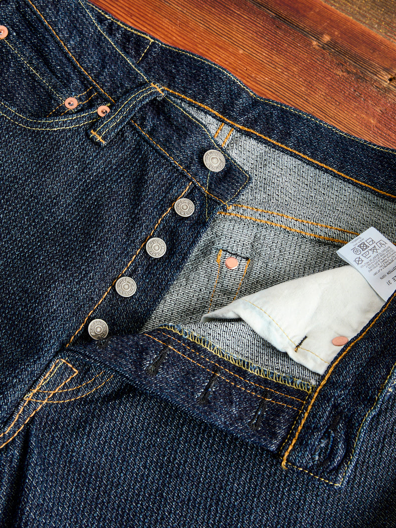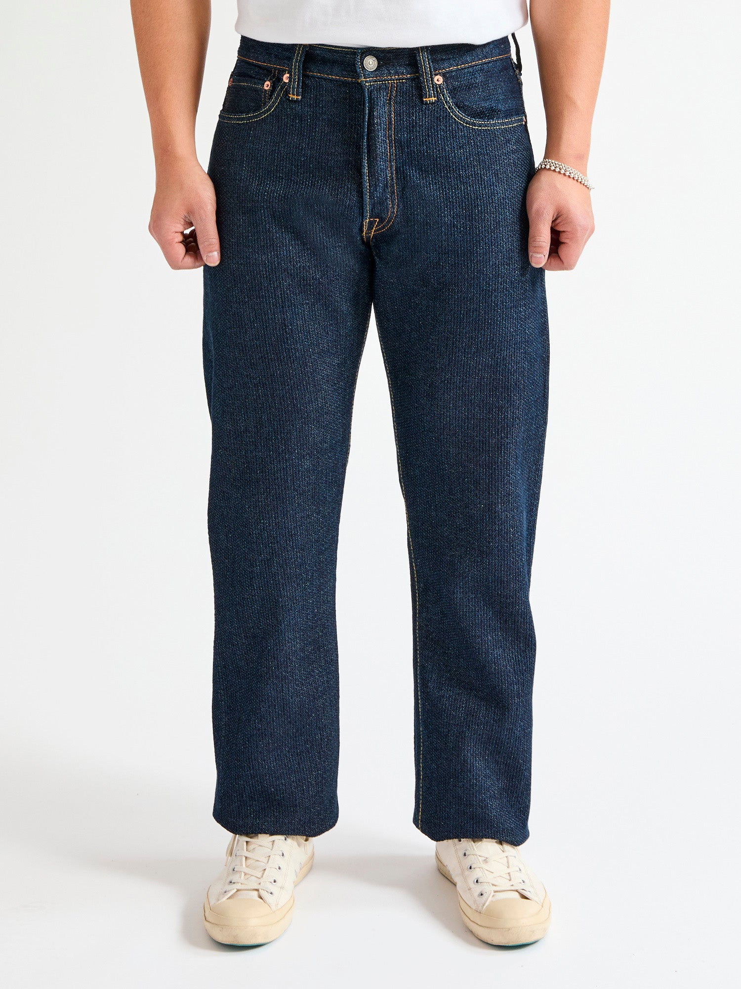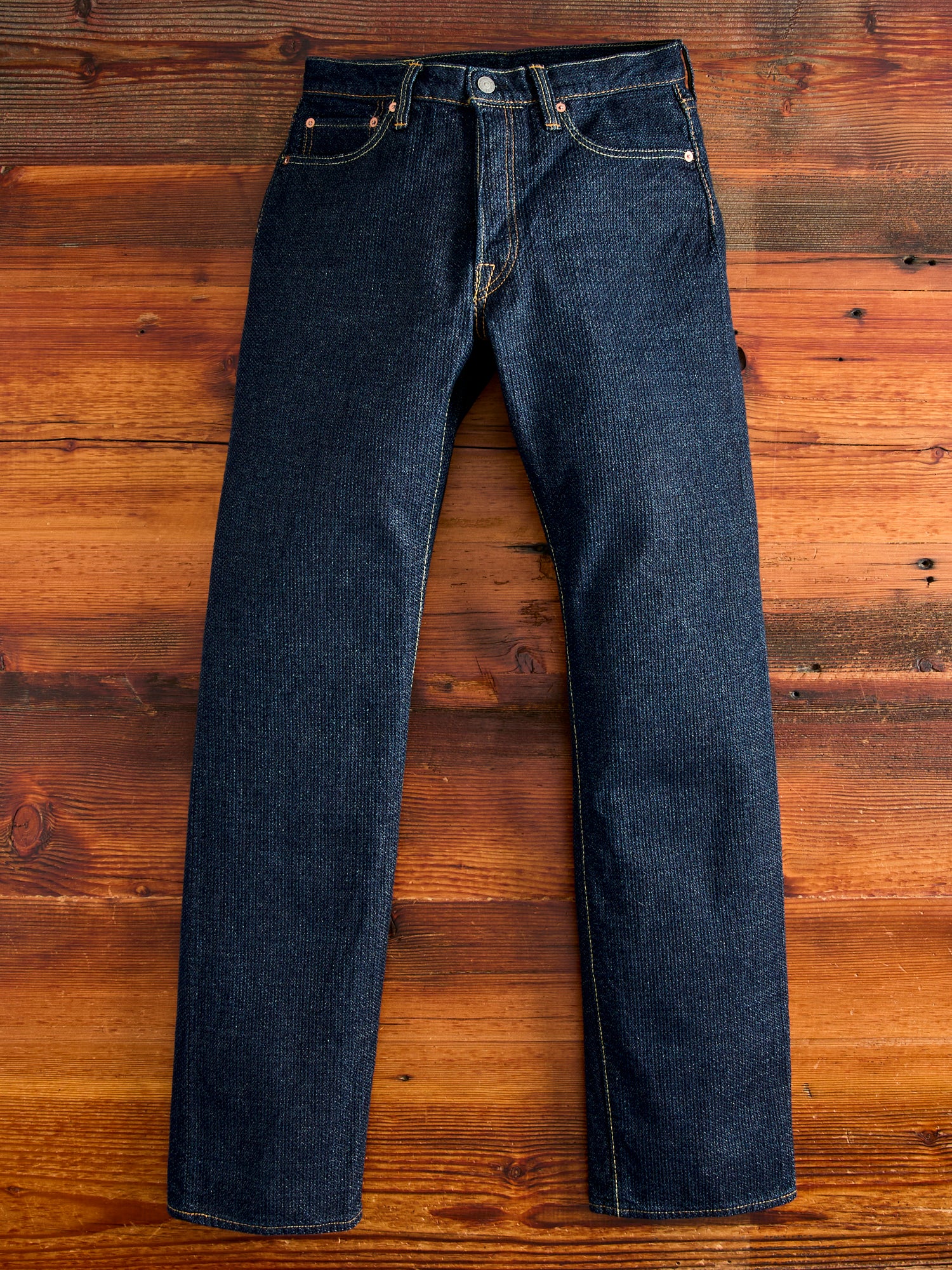 • The Regular Straight (003) fit from Pure Blue Japan has a medium-high rise with a classic straight fit through the leg and a very slight taper at the ankle