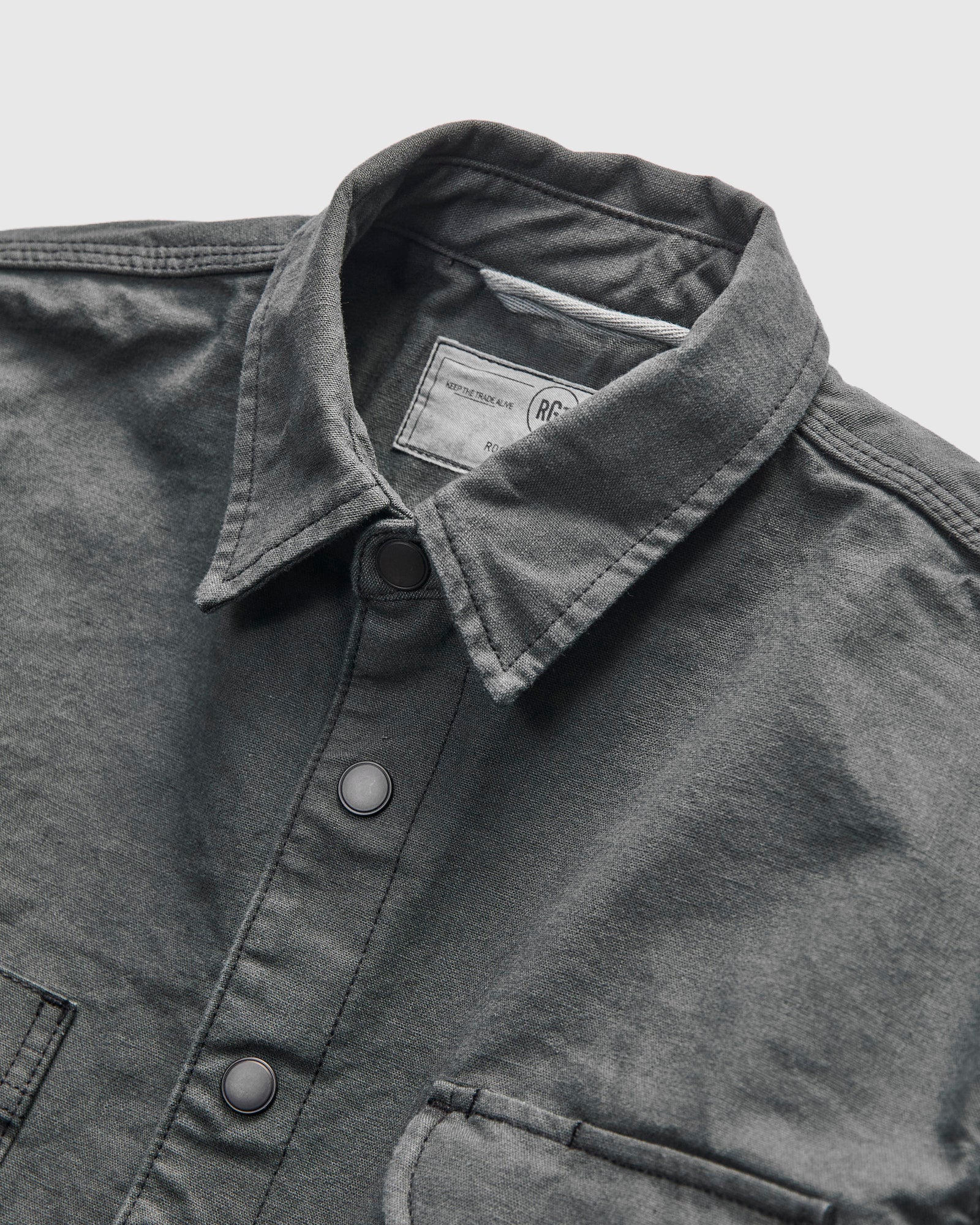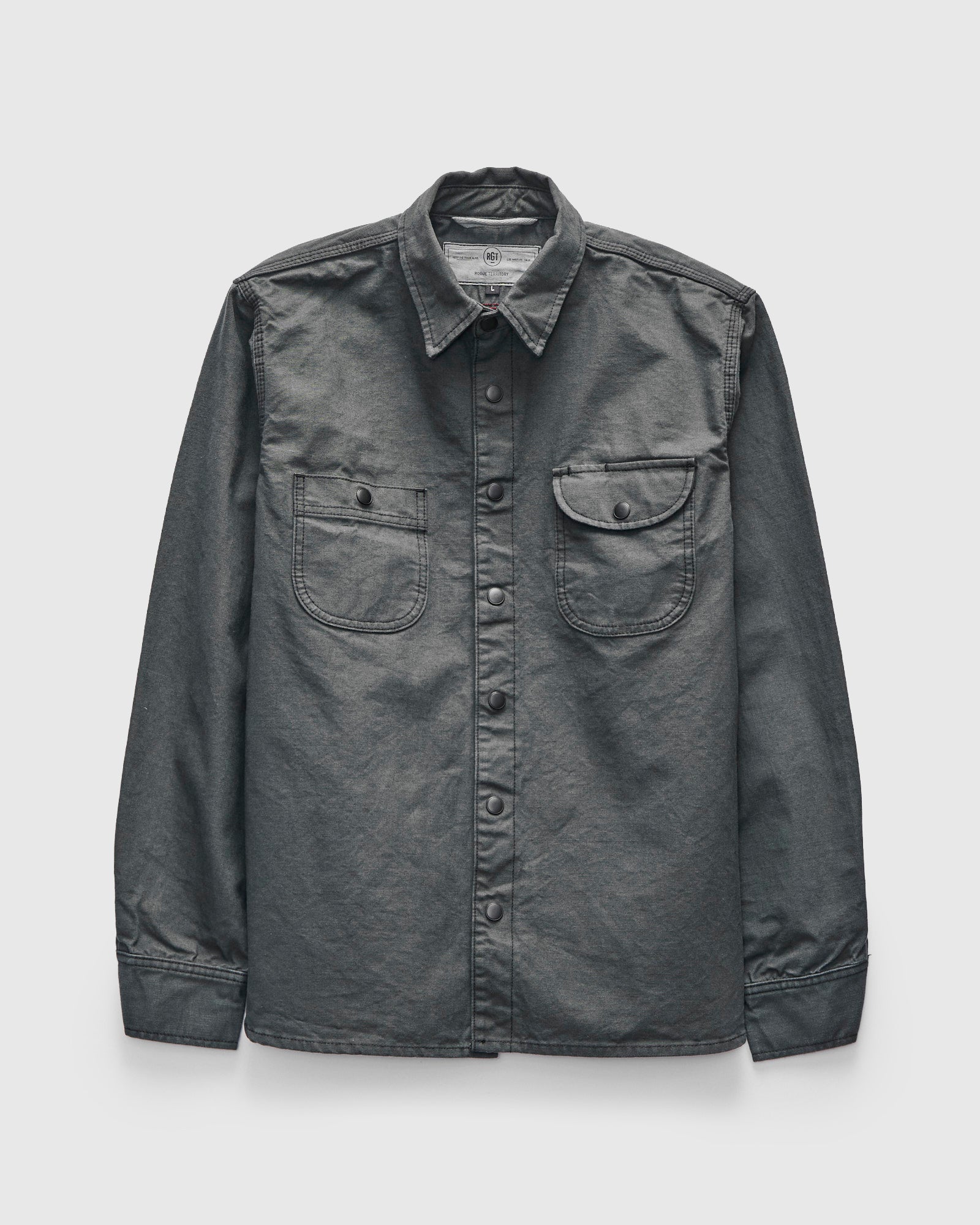 • Rogue Territory updates their utility Work Shirt with an 11oz selvedge canvas that has been direct-dyed for a deep color. The direct dye method is intentionally non-colorfast, allowing the garment to fade and transform with wear. Finished with pockets at the chest, triple needle chain-stitched side seams, and antiqued brass snaps.