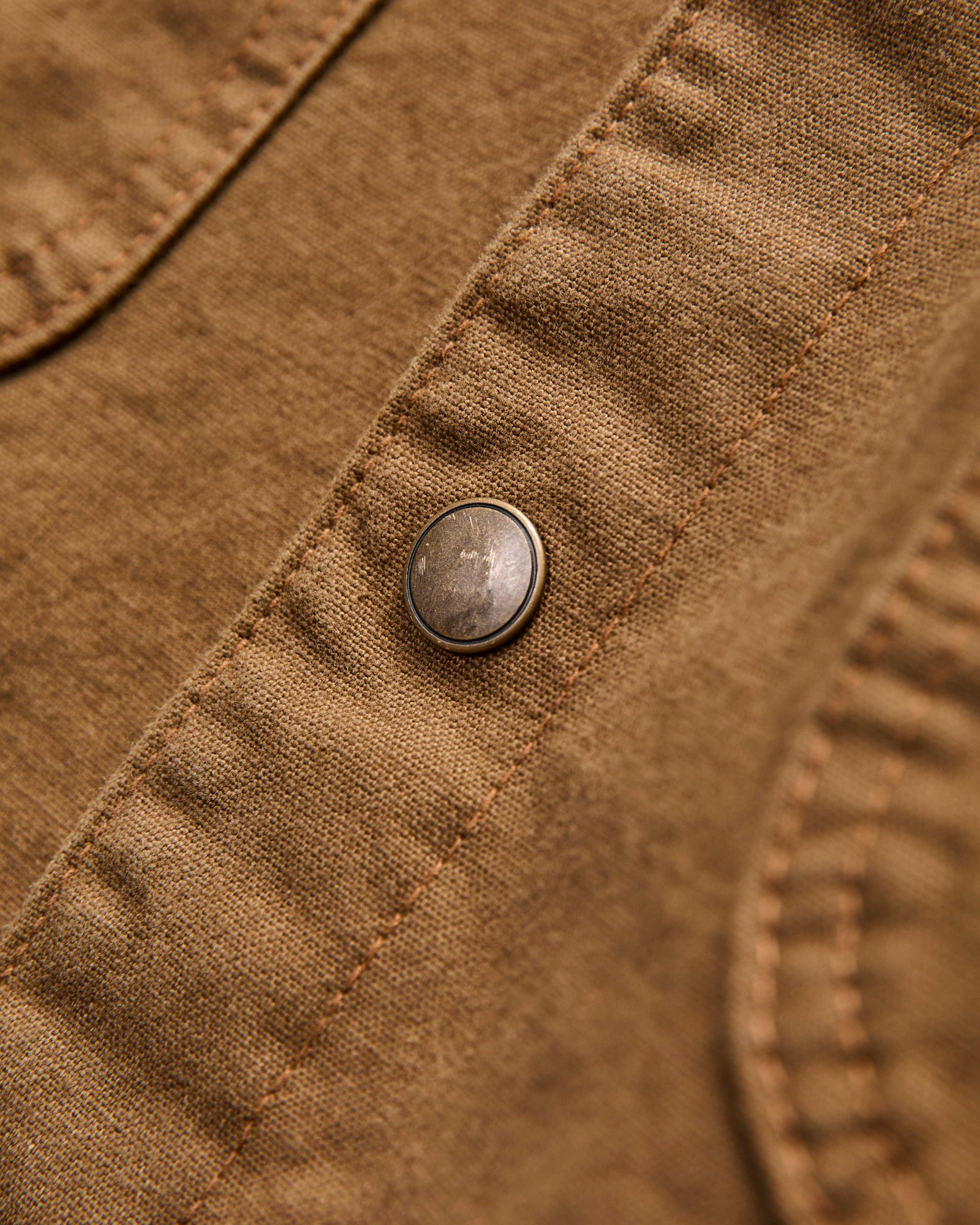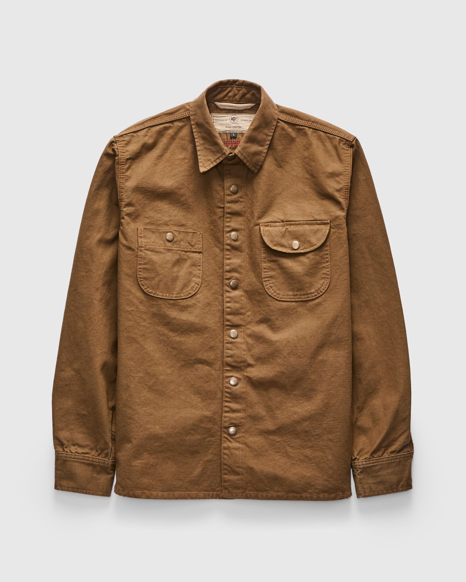 • Rogue Territory updates their utility Work Shirt with an 11oz selvedge canvas that has been direct-dyed for a deep color. The direct dye method is intentionally non-colorfast, allowing the garment to fade and transform with wear. Finished with pockets at the chest, triple needle chain-stitched side seams, and antiqued brass snaps.