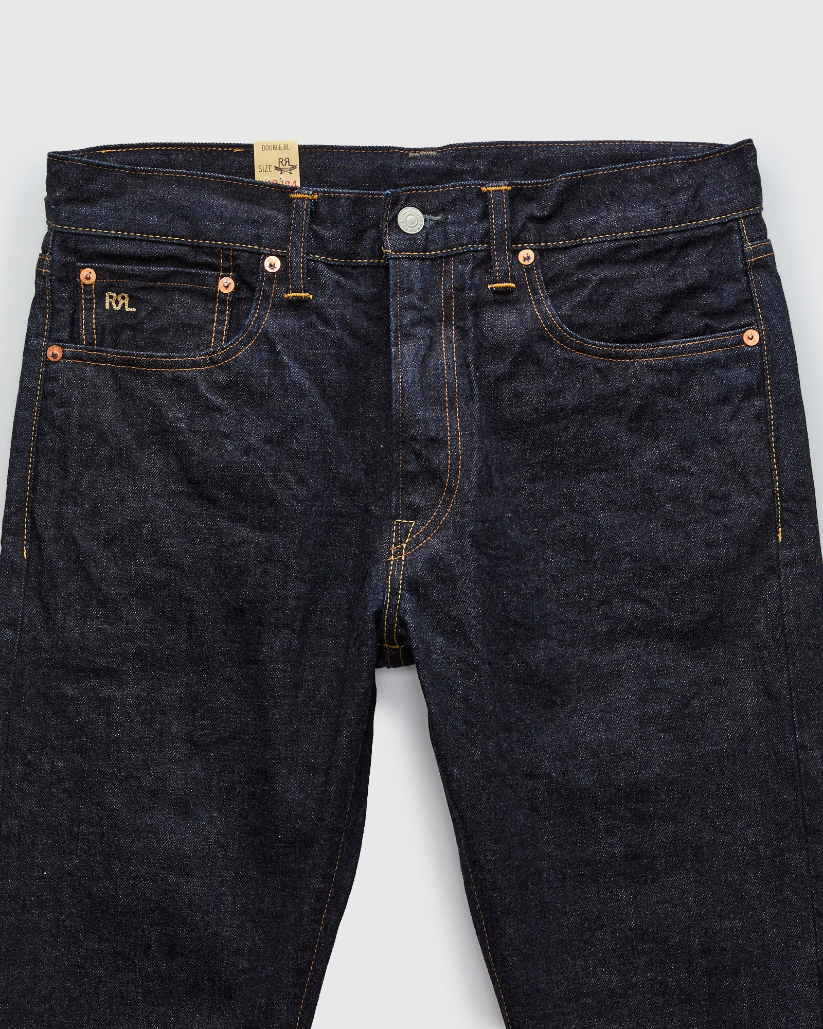 • The RRL "High Slim" Fit is a slim tapered fit that has been adjusted to account for more room in the top block and thighs while maintaining a sleek taper throughout the leg