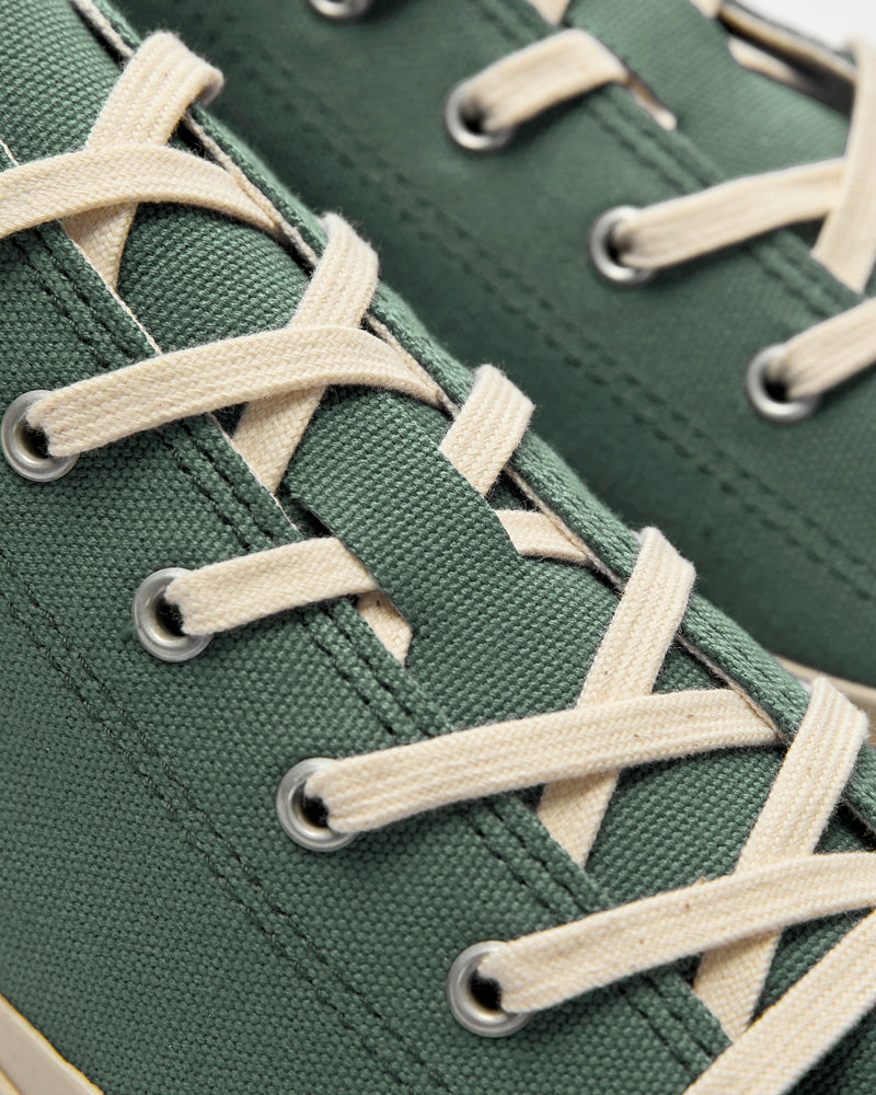 Launched in 2008, Shoes Like Pottery is a footwear label from Moonstar, who has been producing footwear in Kurume, Japan since 1873. All Shoes Like Pottery sneakers are vulcanized in old pottery kilns, allowing the sole to meld to each shoe for a more durable and longer-lasting canvas sneaker.
