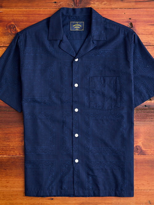 Broad Cloth Short Sleeve Button-Down Shirt in Navy