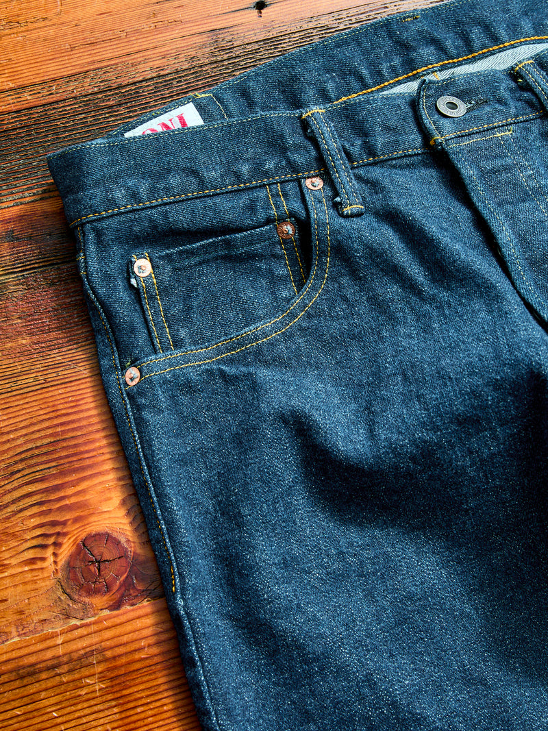 • A label shrouded in mystery, ONI Denim of Okayama is one of the most prestigious denim labels in the world. The brand has garnered a cult-following for their signature slub denim, which is crafted in small-batches by a single party on a single shuttle loom in Japan.