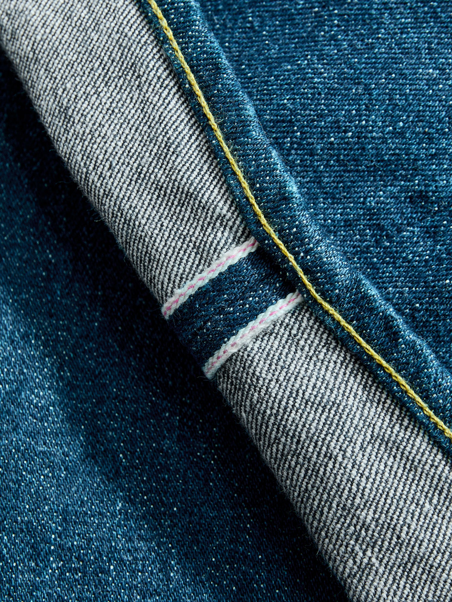• Rope dyed indigo warp and white weft