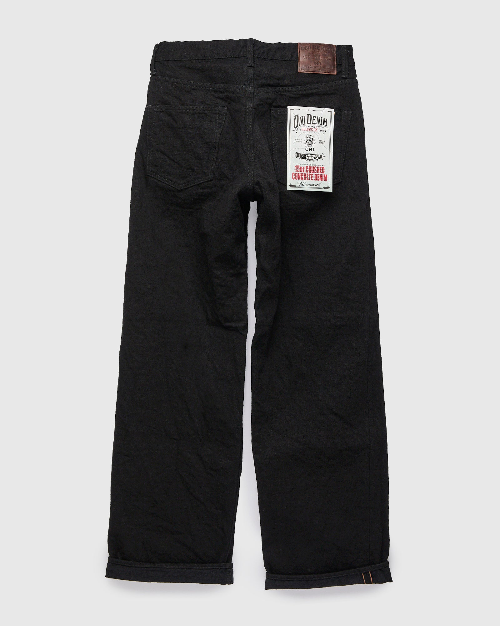 • ONI’s Crushed Concrete denim delivers an unparalleled amount of texture at a versatile 15oz weight. Woven at ultra-low tension using thick slub yarns, the fabric features heavy nep and irregular flecking throughout, giving the appearance of "crushed concrete". This variation of the denim features a sulphur-dyed warp and weft for a deep black look. Carefully woven at a slow pace to preserve texture and character, each pair is finished with custom hardware and rinsed to remove shrinkage.