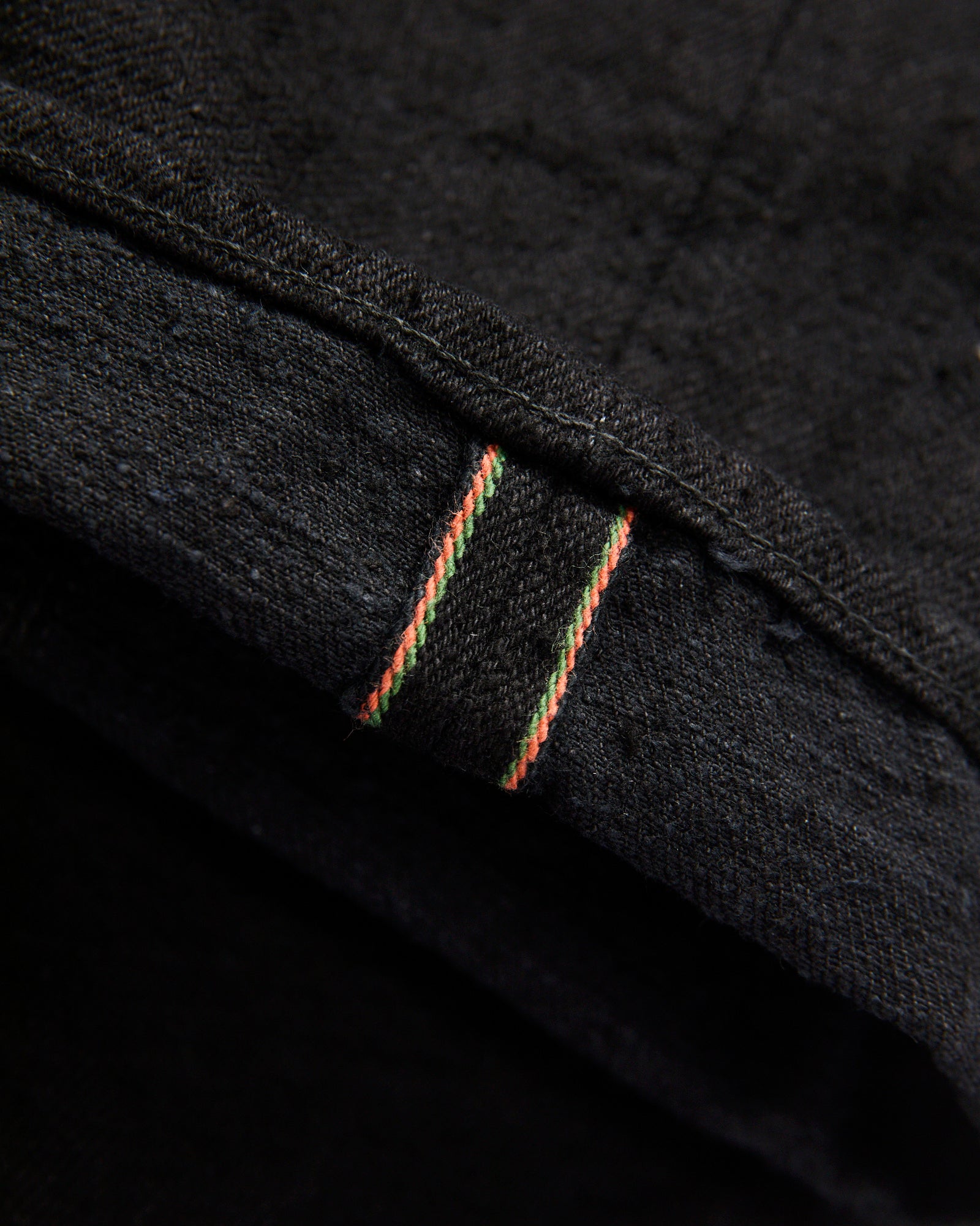 • Green, orange, and black "Kabuki" selvedge