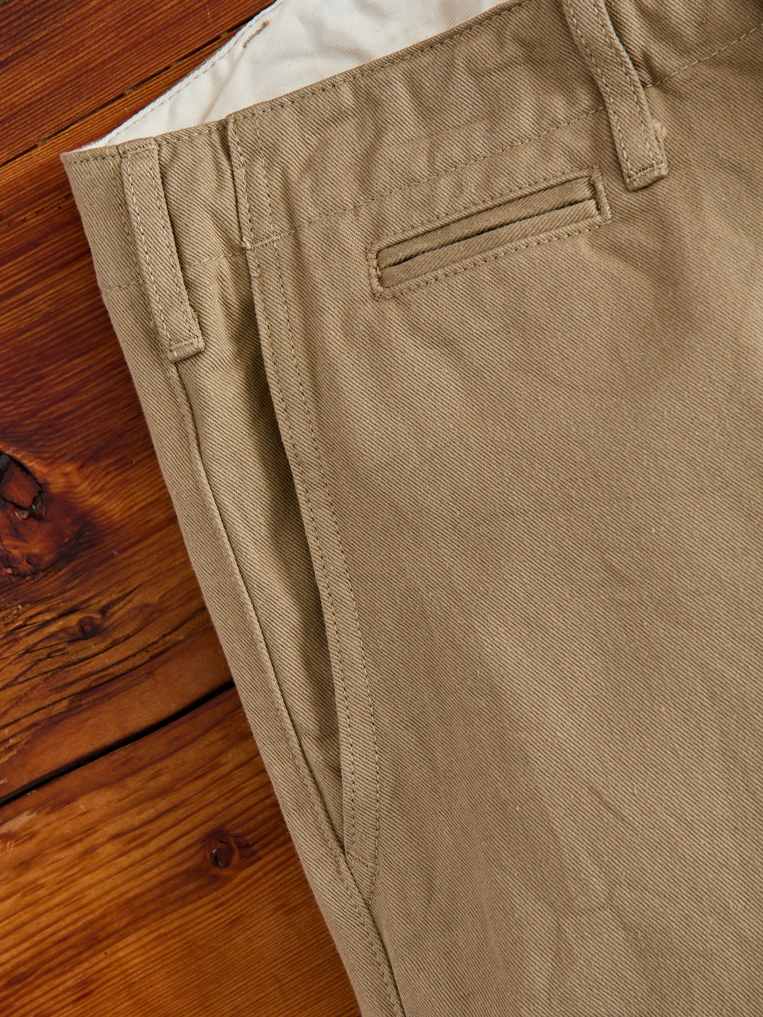 • ONI's 737 chino trousers are crafted from the brand's 9.5oz low-tension selvedge chino fabric and cut in a relaxed straight fit. The textured chino twill fabric is woven using rope-dyed thread, adding a rich color to the classic slant pocket trouser design. Ideal for year-round wear, the chinos are finished with a woven patch, tonal stitching, and custom metal hardware.