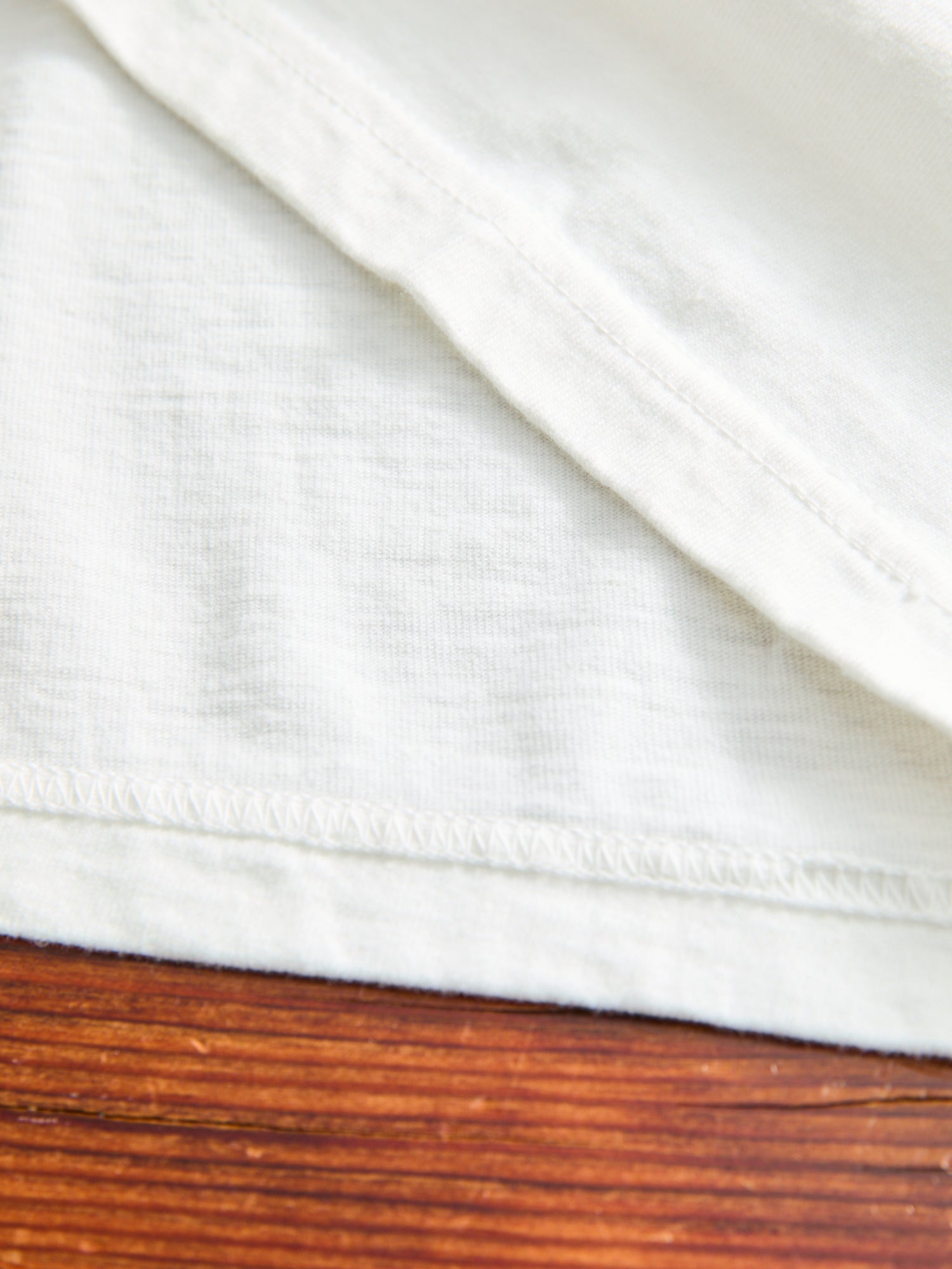 • Samurai's Heavyweight T-shirts are crafted using a thick 14 gauge yarn, and sewn with the same level of expertise as the brand's denim. Woven on vintage machines, the shirts feature carefully hand-printed silk screen images. This installment is cut in Samurai's new OVS fit, which increases the chest size and length for the overseas market.