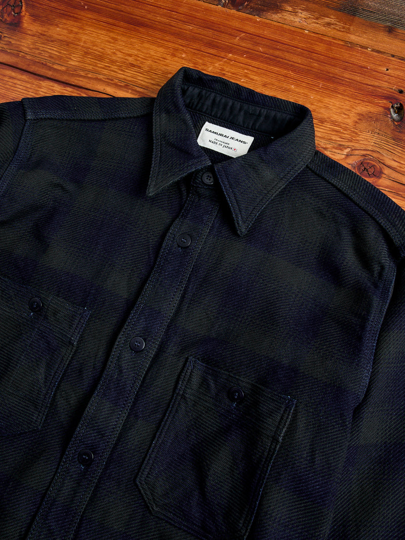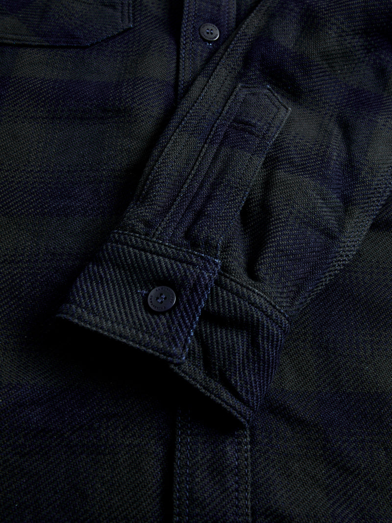 SIN24-03W Indigo Rope Dyed Flannel Shirt in Black