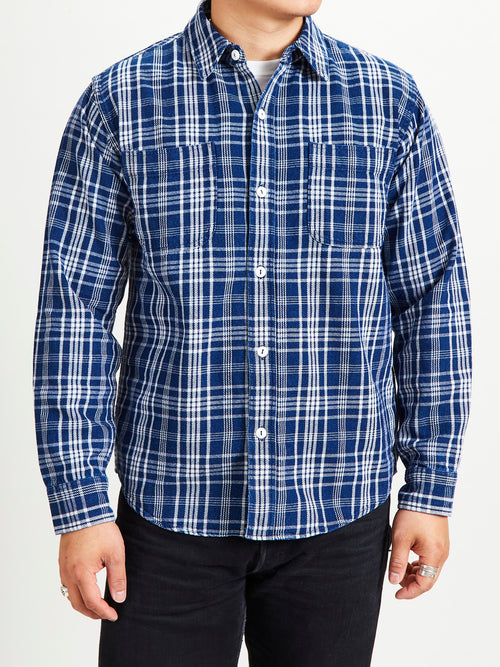 View product - Indigo Check Flannel Shirt in Blue Ombre