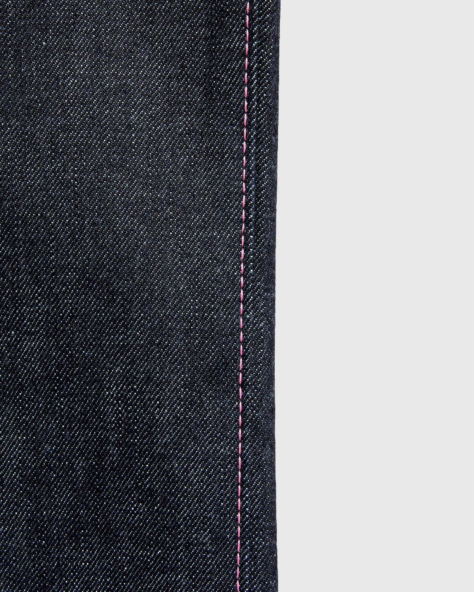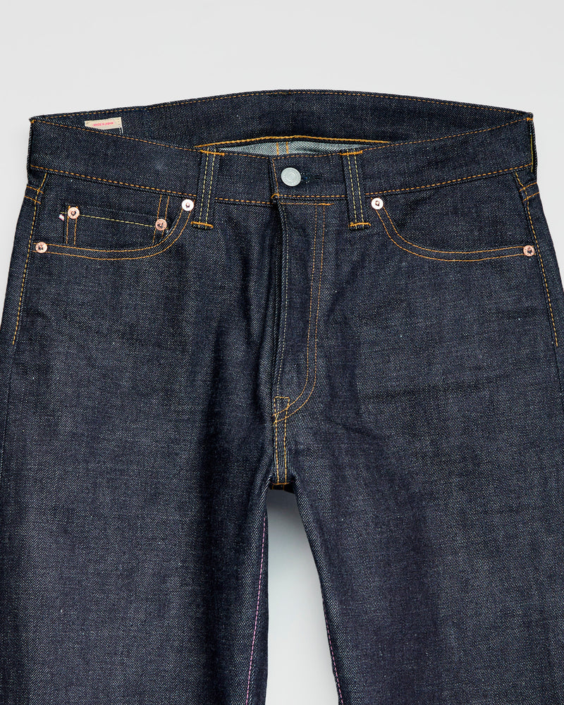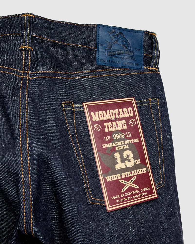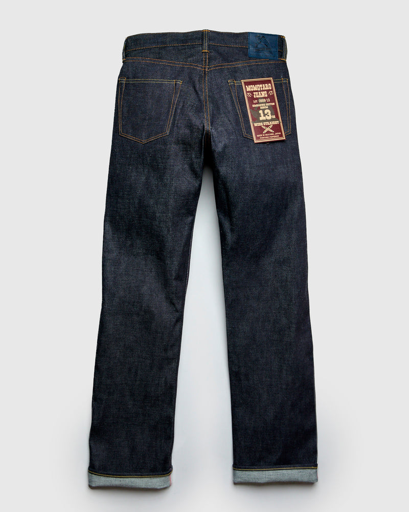 • Momotaro's "Wide Straight" fit has a high-rise, loose top-block, and minimal taper throughout the leg