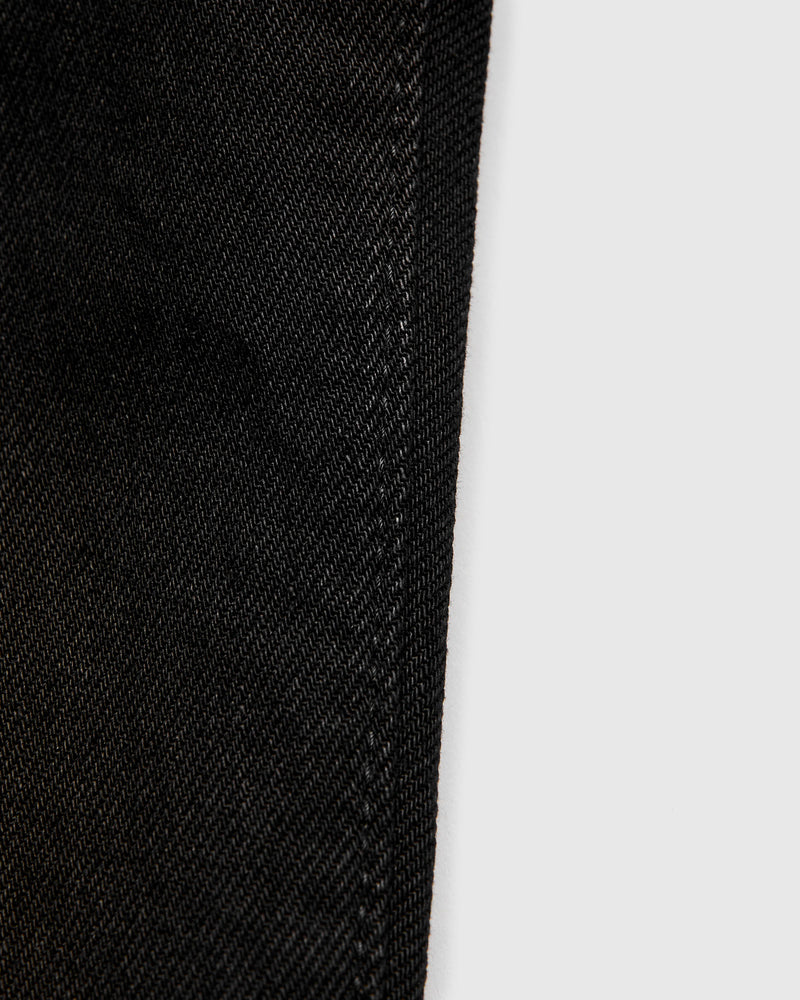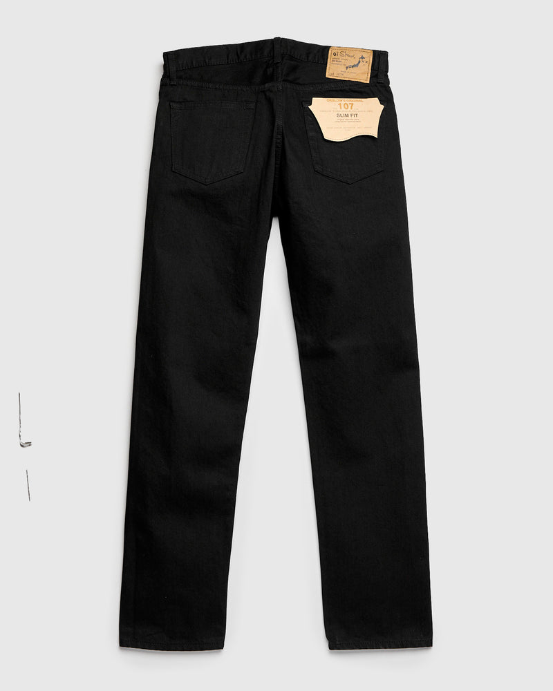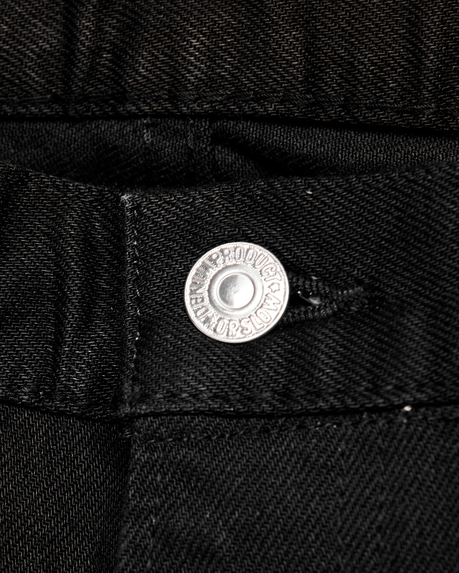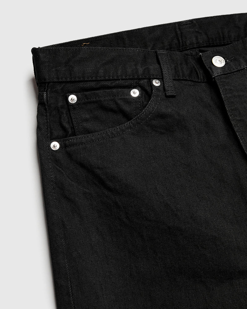 • orSlow's signature black jeans are cut from a 13.5oz Japanese denim that has undergone a pre-soak treatment for a softer more broken-in feel. The jeans sport a subtle brushed texture modeled after denim from lead designer Ichiro Nakasu's personal collection, and feature vintage-inspired detailing like oxidized rivets and a paper waist patch.