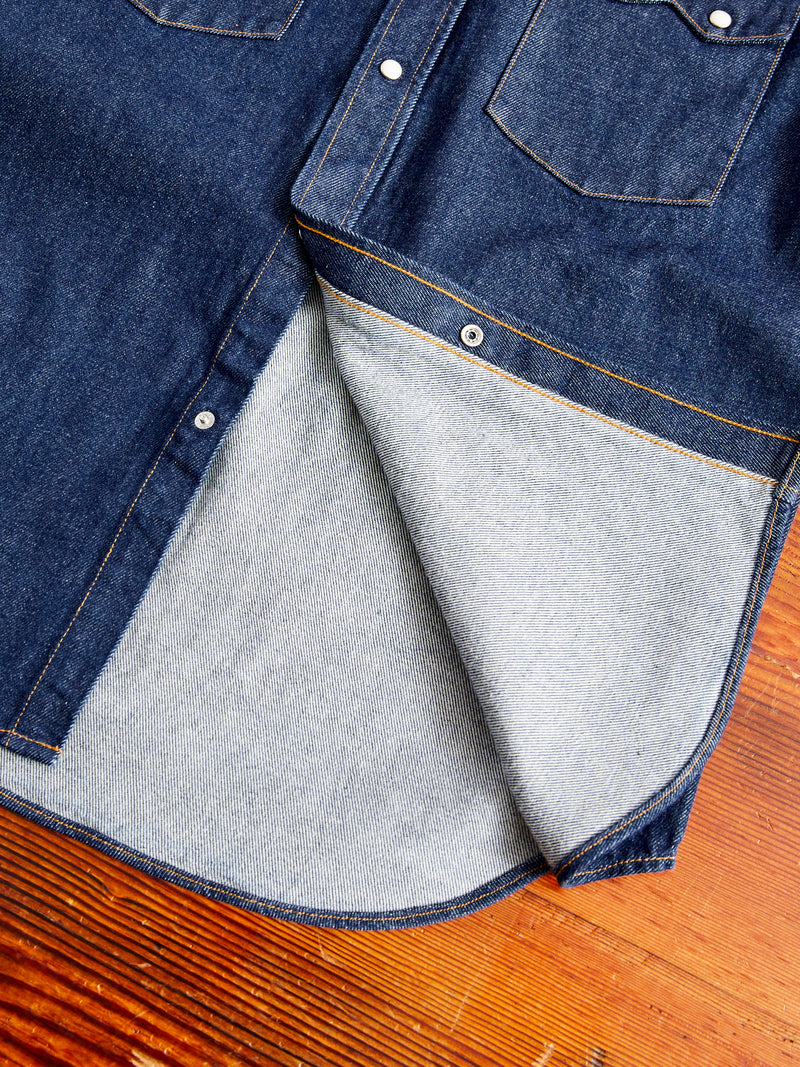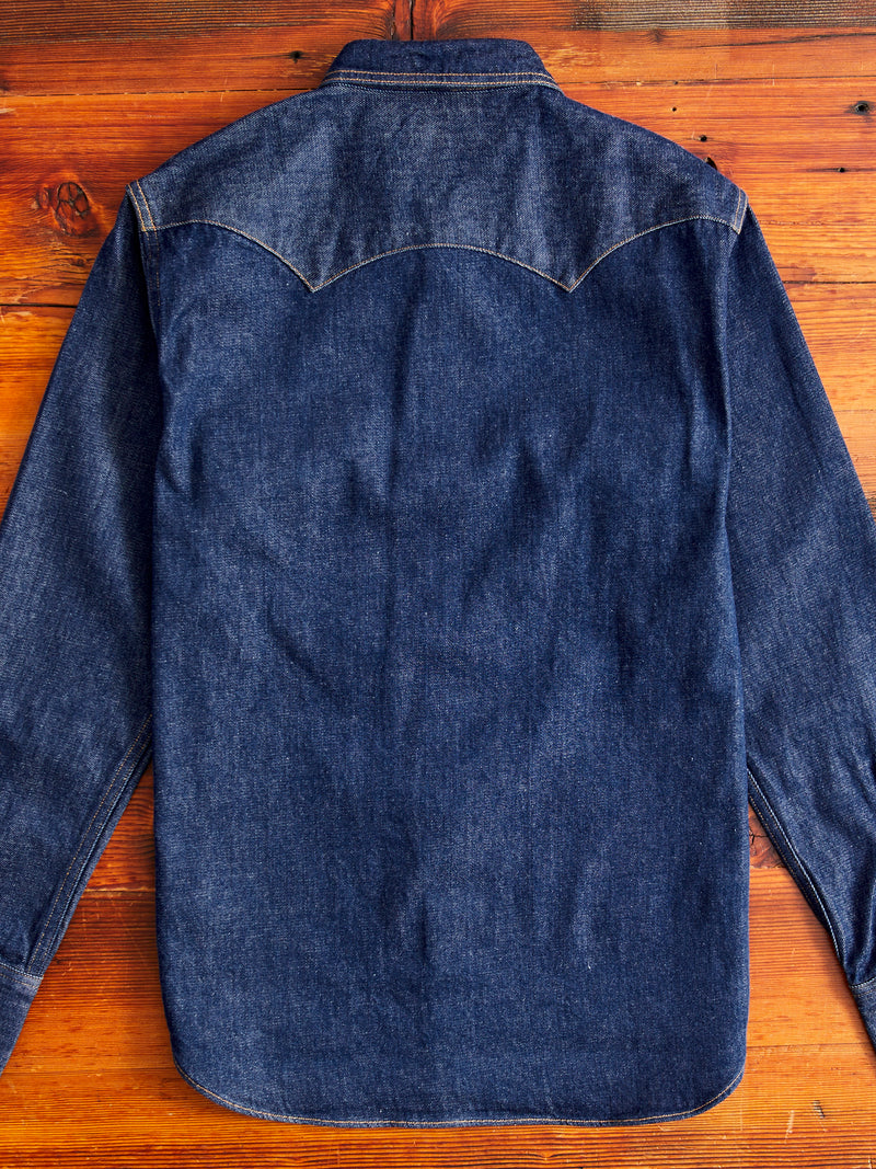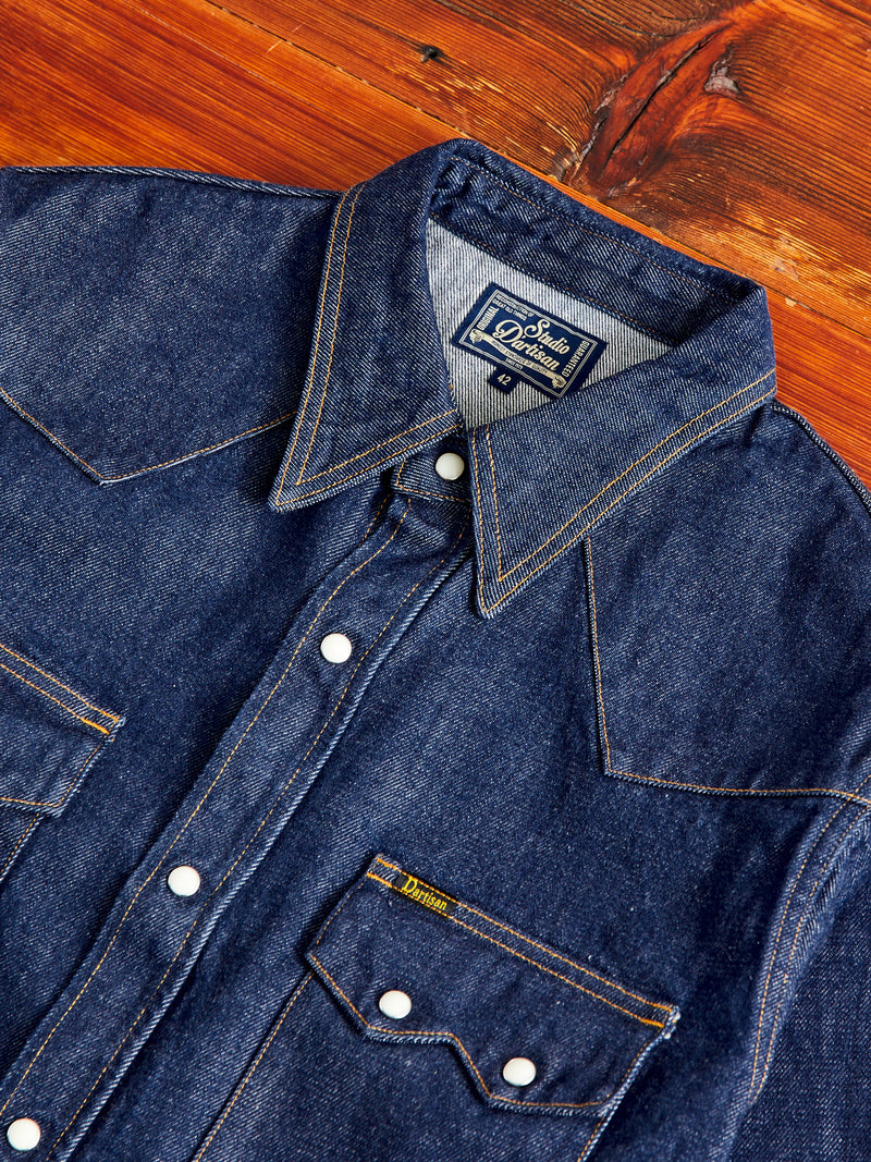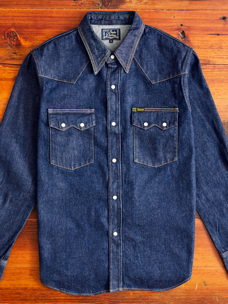 • Inspired by the old American west, this Denim Western from SDA features a 14oz fabric woven using rope dyed natural indigo yarn. Modeled after late 40's shirting, Studio D'artisan's western shirt features classic old west paneling, sawtooth pocket flaps, chainstitch construction, and a mother of pearl snap button placket. Cut in a regular fit, the shirt has undergone a one-wash rinse process to remove shrinkage and soften the fabric.