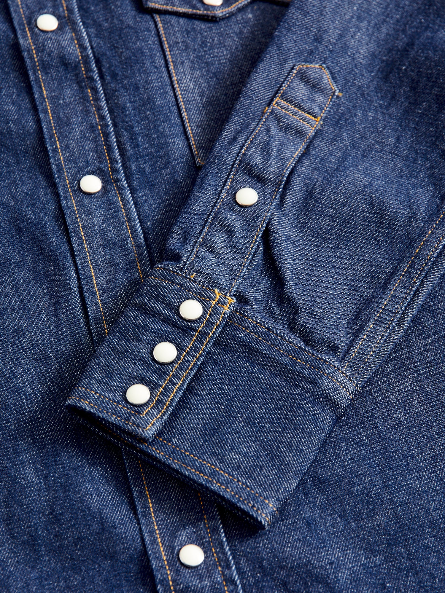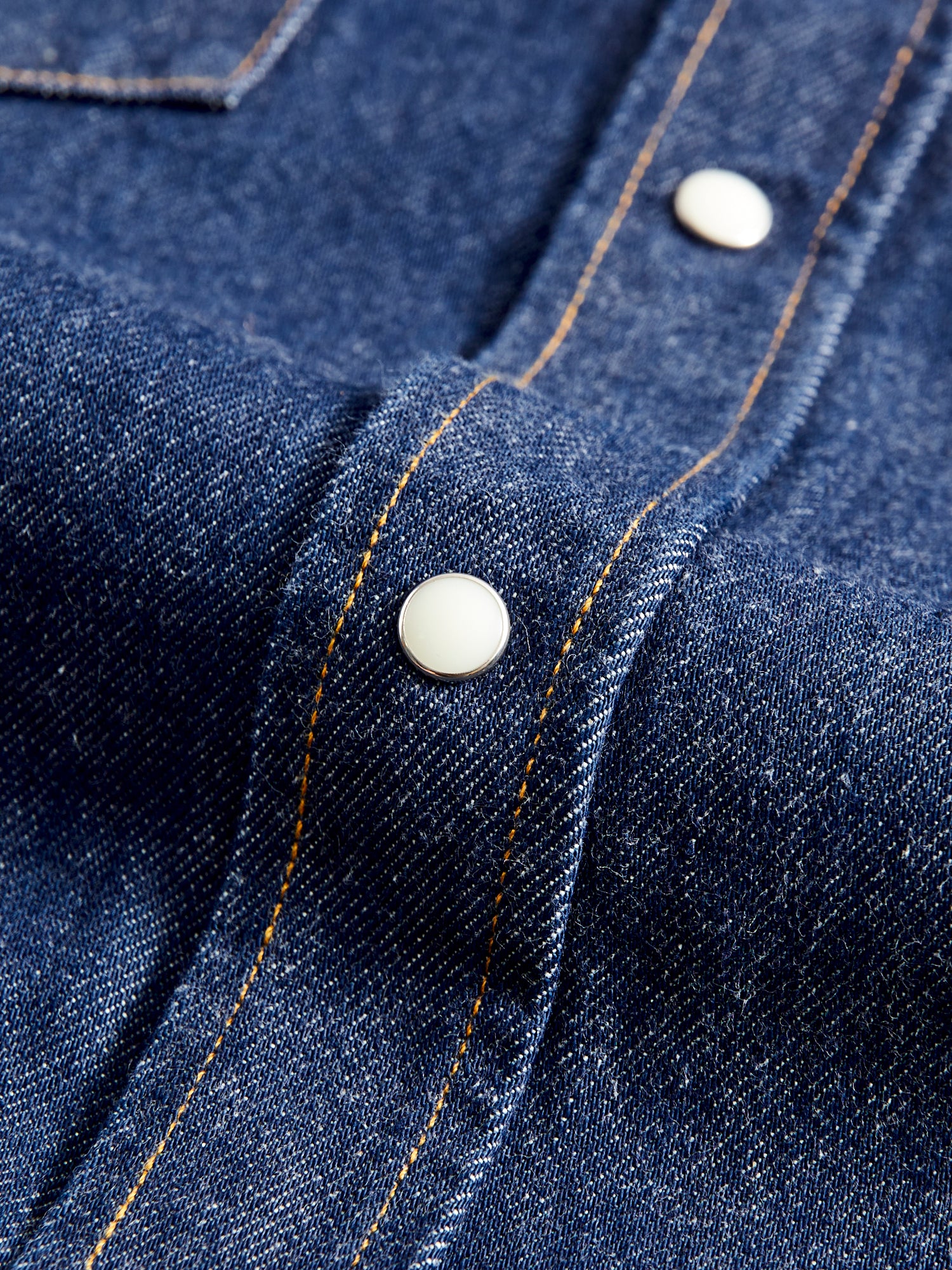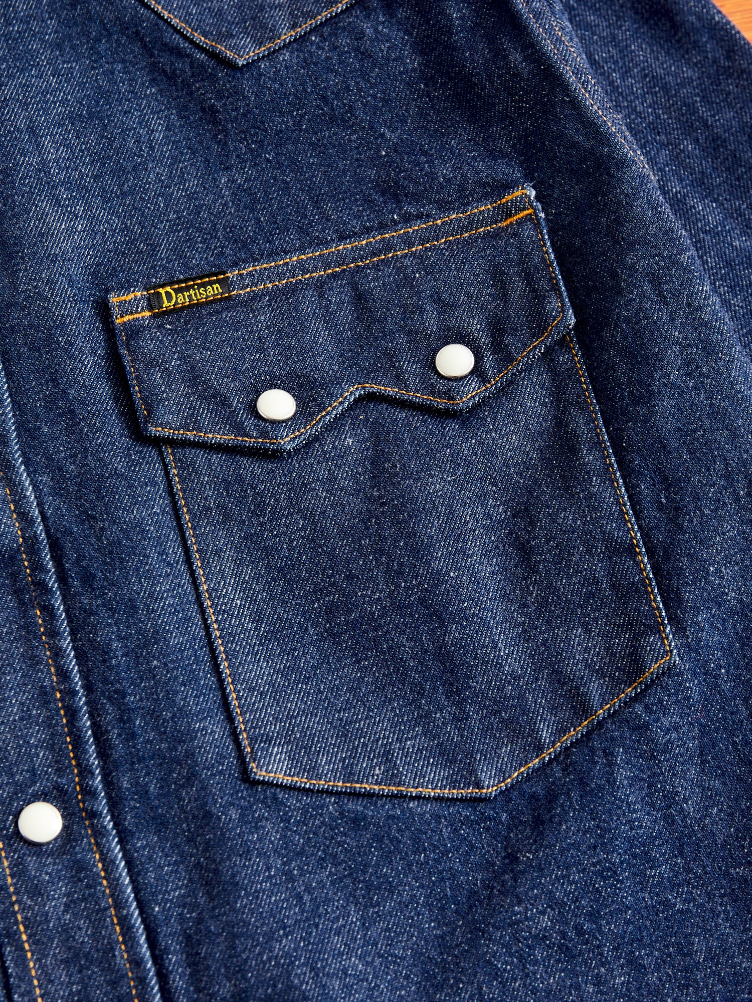 • Inspired by the old American west, this Denim Western from SDA features a 14oz fabric woven using rope dyed natural indigo yarn. Modeled after late 40's shirting, Studio D'artisan's western shirt features classic old west paneling, sawtooth pocket flaps, chainstitch construction, and a mother of pearl snap button placket. Cut in a regular fit, the shirt has undergone a one-wash rinse process to remove shrinkage and soften the fabric.