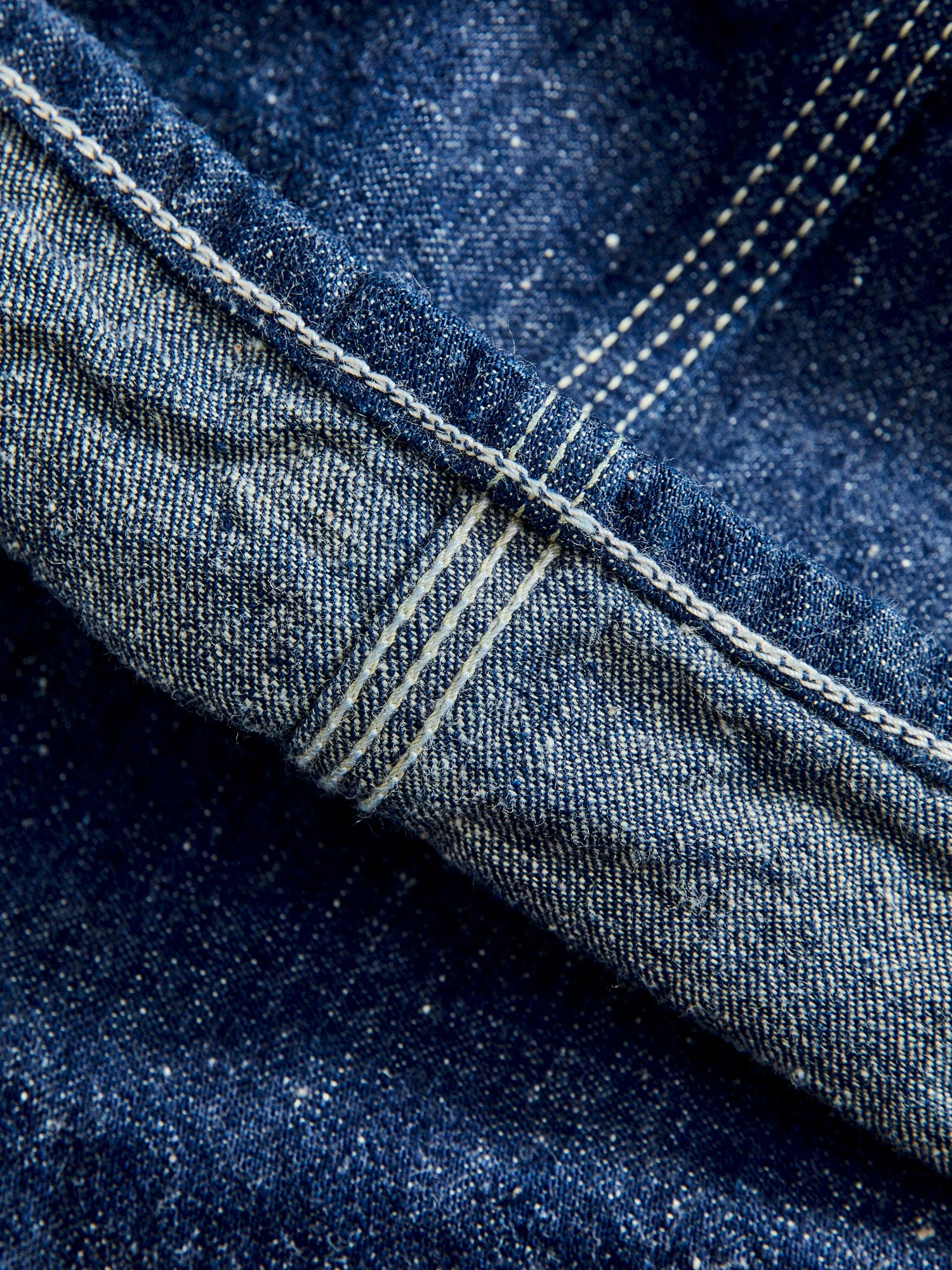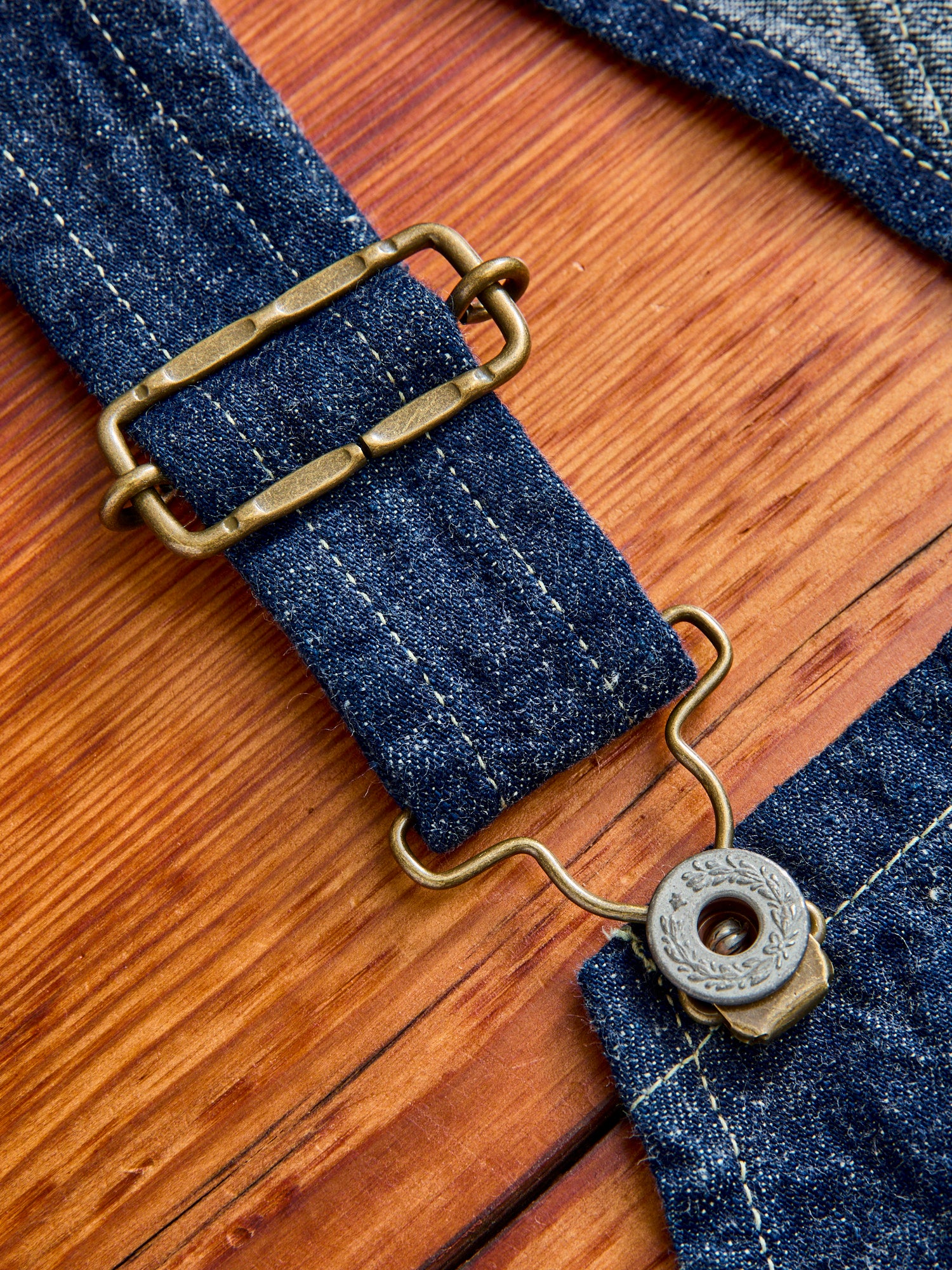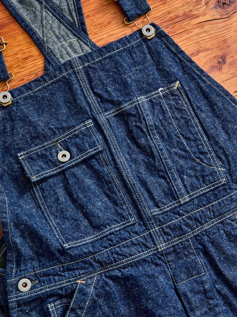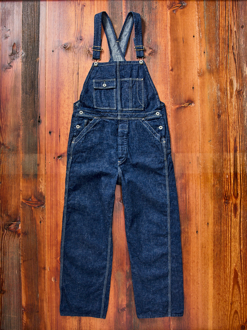 • orSlow's denim overalls are a faithful remake of the classic workwear garment using vintage construction and quality materials. Built from a lightweight denim with surprising nep and texture, the pants feature functional design elements such as tool pockets, triple needle construction and bartack reinforcements. Cut in a high rise, straight leg fit for superior comfort and mobility.