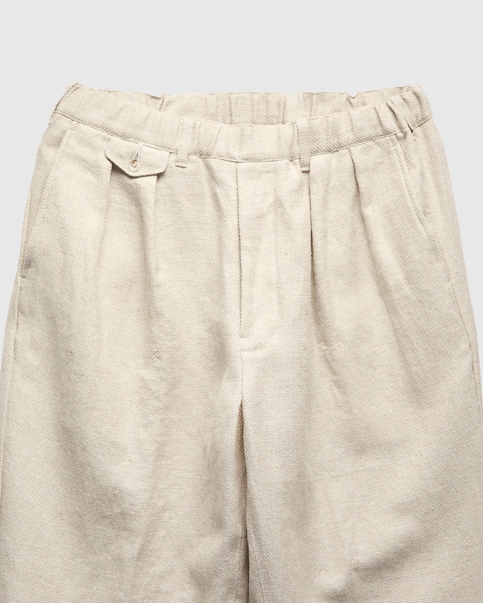 2-Pleats Cotton Linen Relax Trousers in Off White