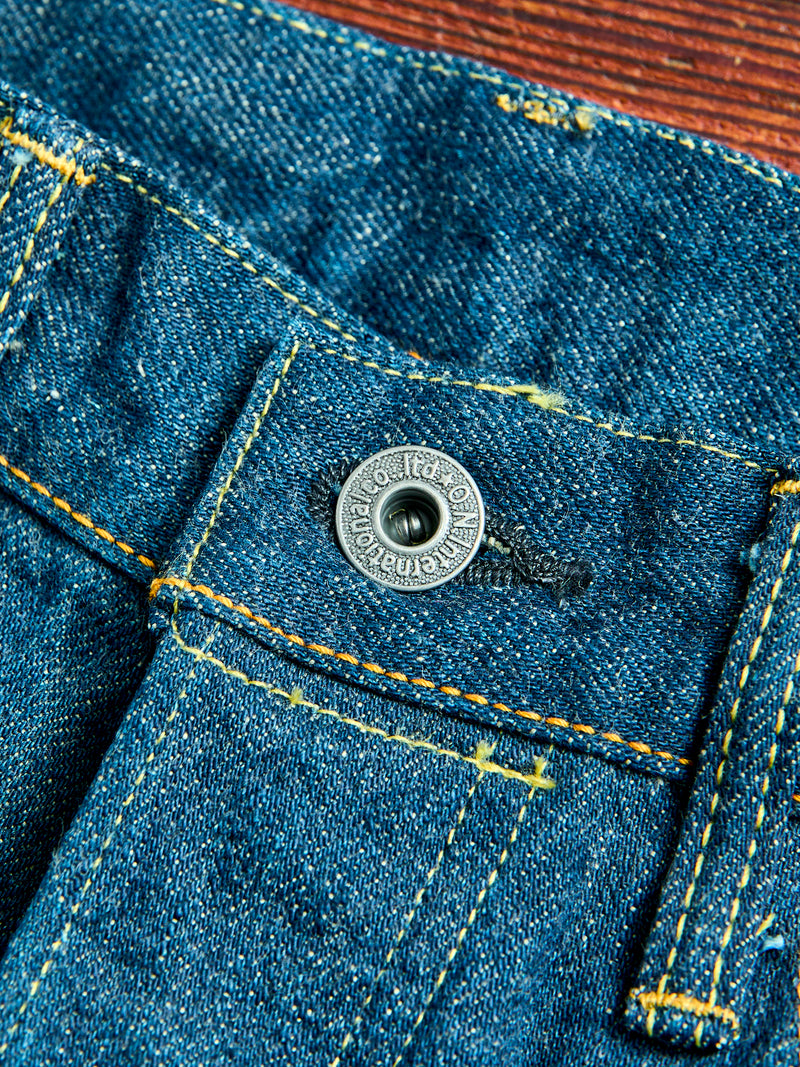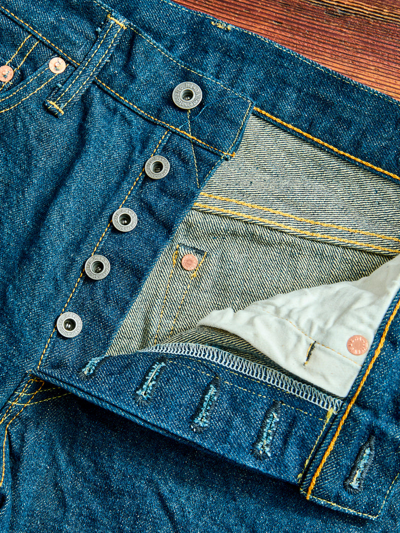 • 15oz unsanforized low tension Ishikawadai selvedge denim fabric, rinsed to remove shrinkage