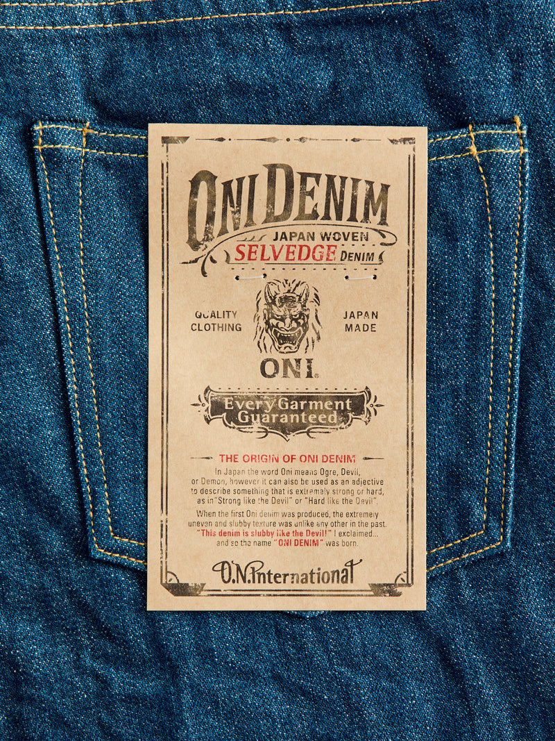 • A label shrouded in mystery, ONI Denim of Okayama is one of the most prestigious denim labels in the world. The brand has garnered a cult-following for their signature slub denim, which is crafted in small-batches by a single party on a single shuttle loom in Japan.