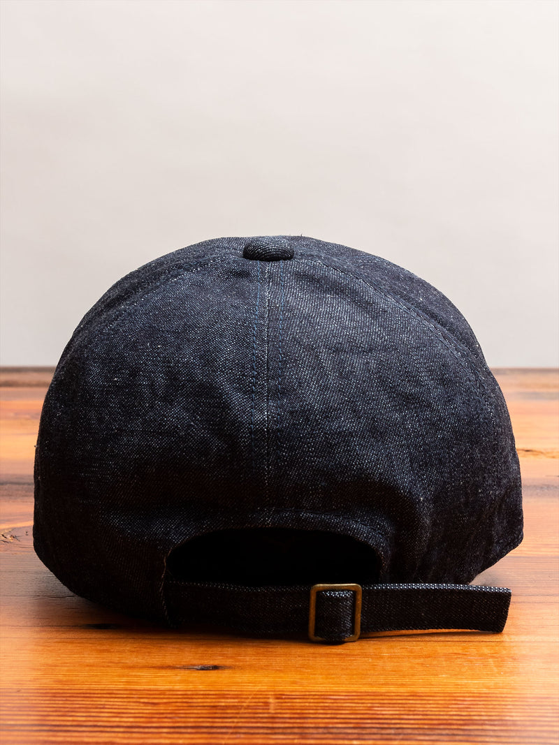 • The 6770 Denim Baseball Cap from Fullcount is crafted from 10oz denim woven using Zimbabwe cotton and features a sewn on patch at the front. Based on 1950's American baseball caps, the hat is designed with a 6-panel crown, an adjustable strap-back, and an indigo-dyed color that will age with continued wear.
