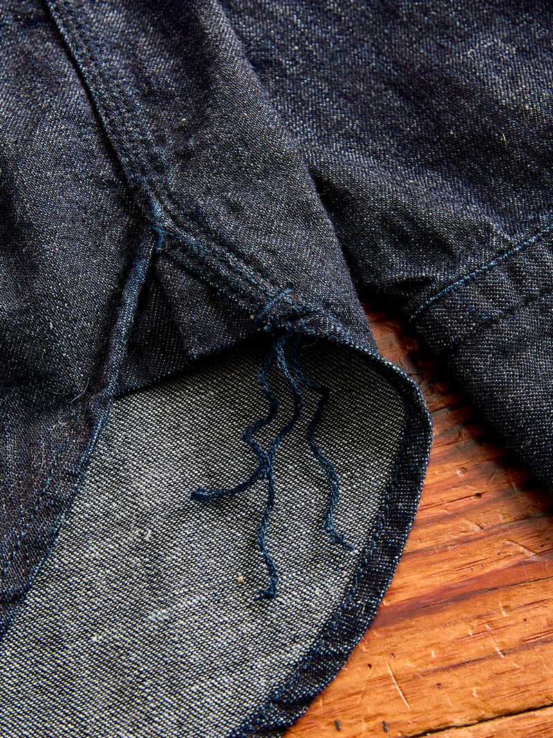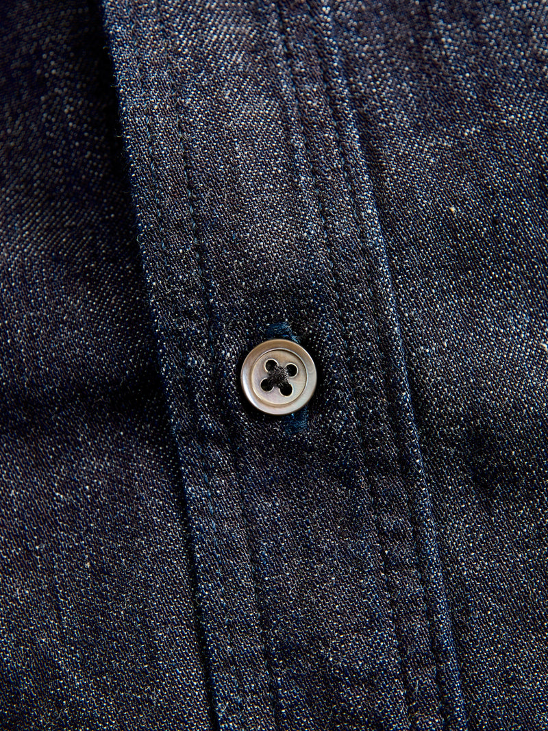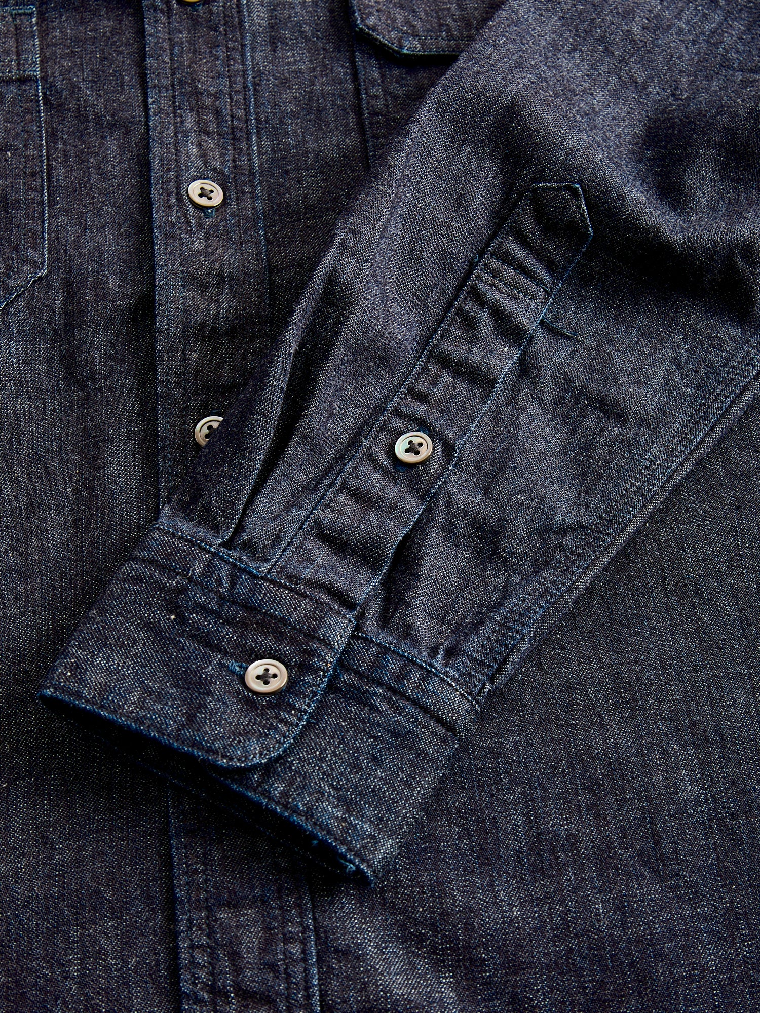 • Expertly made in Japan, this work shirt from Momotaro features an 8oz selvedge denim fabric with vintage-inspired detailing. Cut in a classic workshirt silhouette, the shirt comes fitted with mother of pearl buttons, pockets at the chest, chain-stitch runoff detailing at the gusset, and tonal stitched detailing throughout.