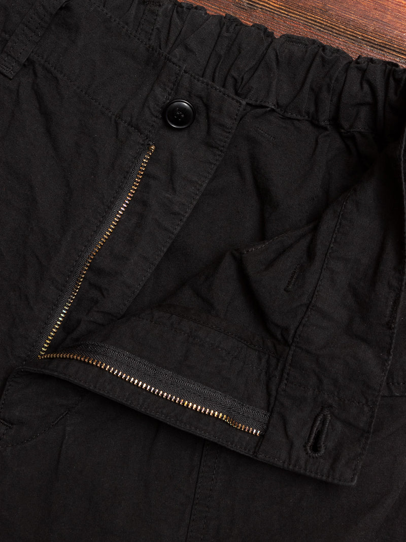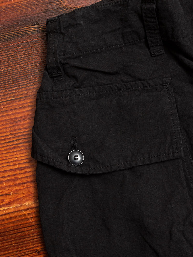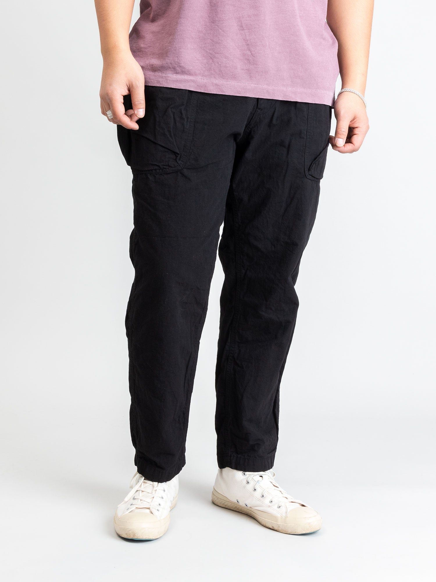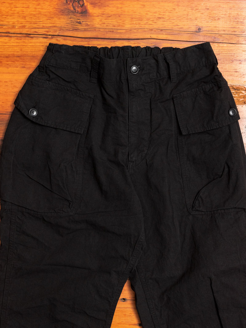 • Combining traditional men's tailoring with the rugged fabrication of military attire the 9/10 Military Pants from Sage de Cret are crafted using a sturdy cotton-hemp blend fabric in a slightly cropped relaxed tapered fit. Sage de Cret's cotton-hemp fabric sports a textured appearance and deep color, due in part to the brands chemical overdye process. Fitted with two oversized patch pockets at the thigh for a distinctly utilitarian look.